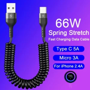 66W 5A Type C Spiral Phone Charge Cable USB Spring Telescopic Fast Charging Cord for Samsung Xiaomi Universal Phone Charge Cable sinsa