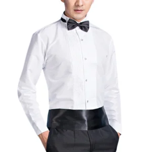 Men White Wedding Shirt With Bowtie Long Sleeves Front Pleated Mens Banquet Dress Shirts Bridegroom sinsa store