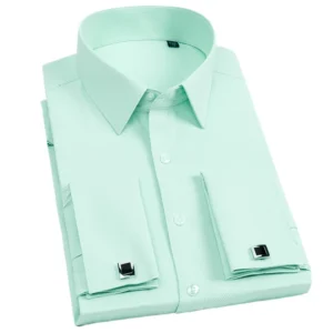 Men’s French Cuff Dress Shirt Long Sleeve Slim Fit Tuxedo Shirts with Cufflinks Poly/Cotton Double Button Collar sinsa store