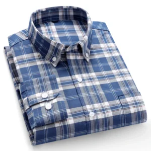 Men’s Classic Vertical Striped & Plaid Button-Up Oxford Dress Shirt, 100% Cotton Formal Business Wear for Spring and Fall Season sinsa store