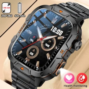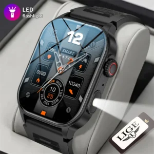LIGE New 1.96″ HD Screen Smart Watch Men With LED UV Flashlight 420mAh Large Battery Men’s Watches Health Monitor Men Smartwatch