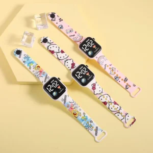 Hello Kitty Cartoon Printed Button LED Electric Watch Teenager Fashion Personality Stitch Printed Square Electronic Watch