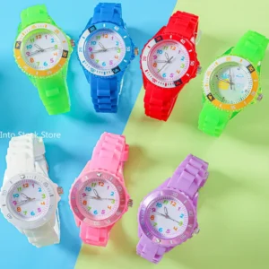 Kids Analog Watch for Boys Girls Soft Silicone Band Colorful Number Cute Watches for Children Quartz Wristwatch Reloj Mujer
