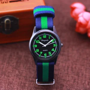 Chaoyada Children Boys Girls 24hours Canvas Quartz Wristwatches Kids Students Military Waterproof Watches