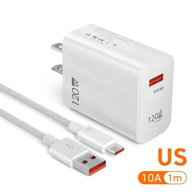 120W USB GaN Charger Quick Charge 3.0 Fast Charging Mobile Phone Adapters Wall Charger Type C Cable For iPhone 15 Samsung Xiaomi