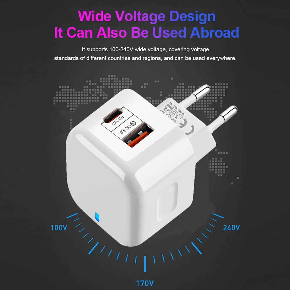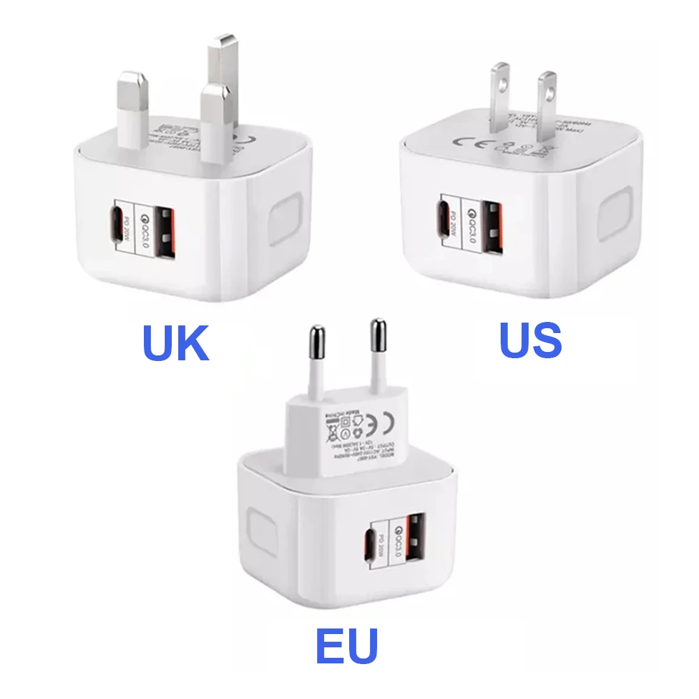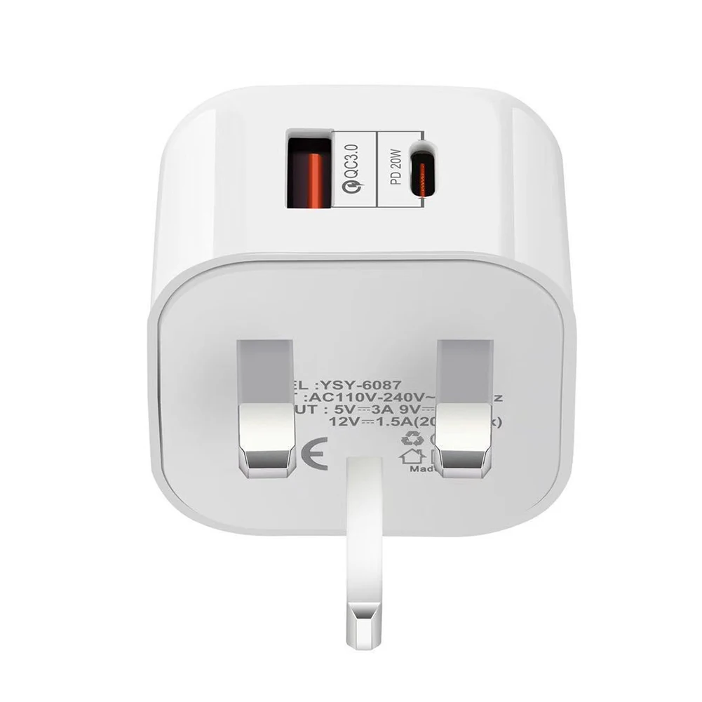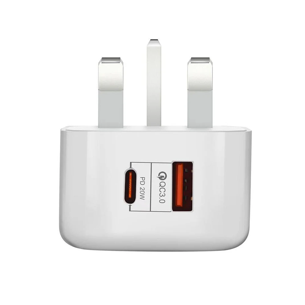 - Equipped with USB-C PD and Quick Charge 3.0 charging up to 20W output for one port.Two power ports together can enjoy 38W fast charging