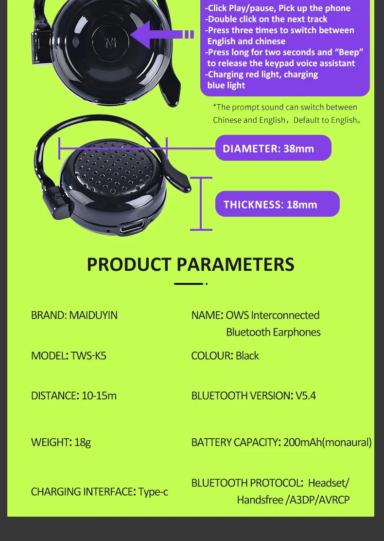• Features: waterproof,With Microphone