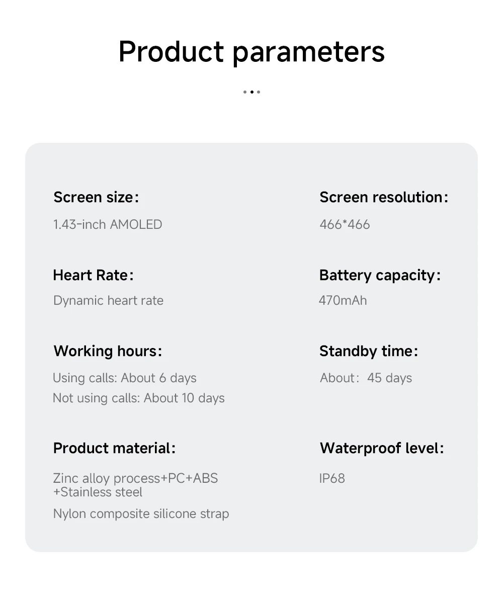 7.Screen size:1.43 inch AMOLED,466*466PX.