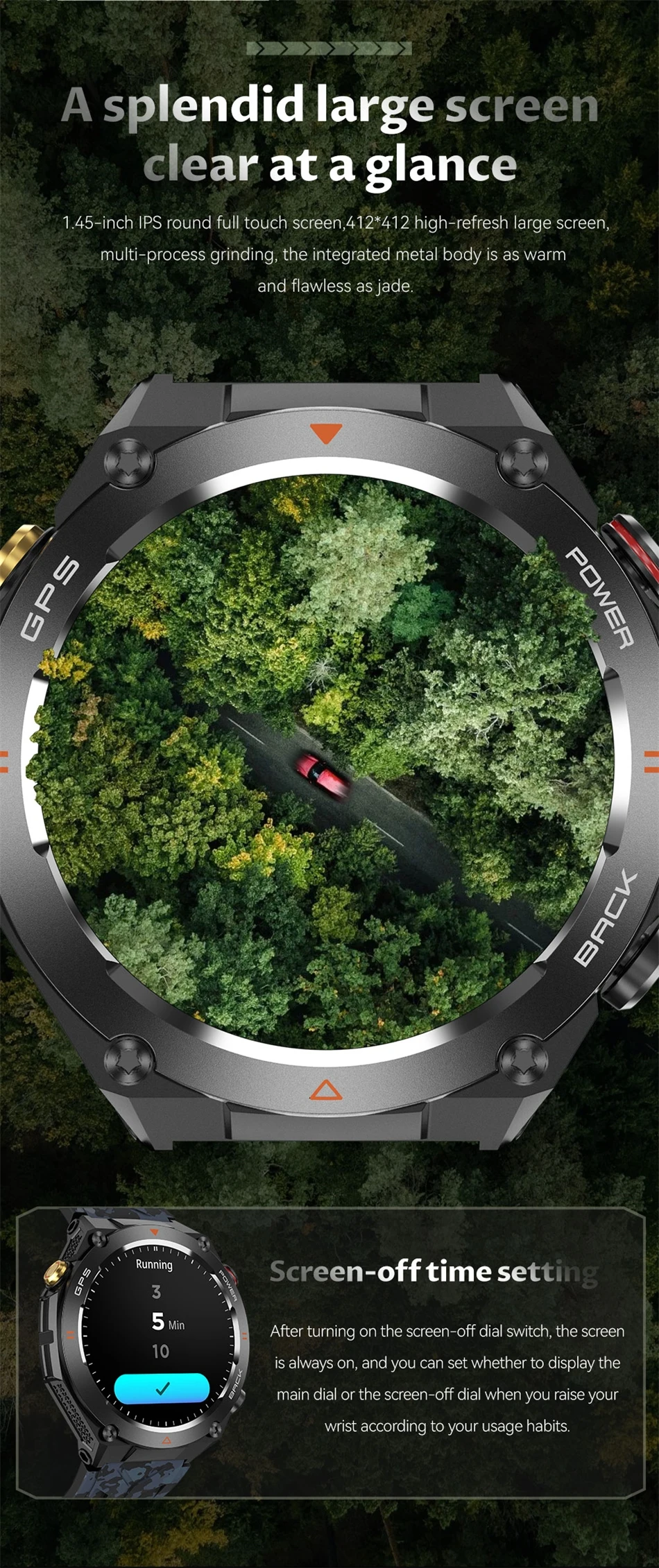 1.45-inch IPS round full touch screen, 412 * 412 high brush screen multi-channel process grinding, one metal body is like a beautiful jade warm and flawless!
