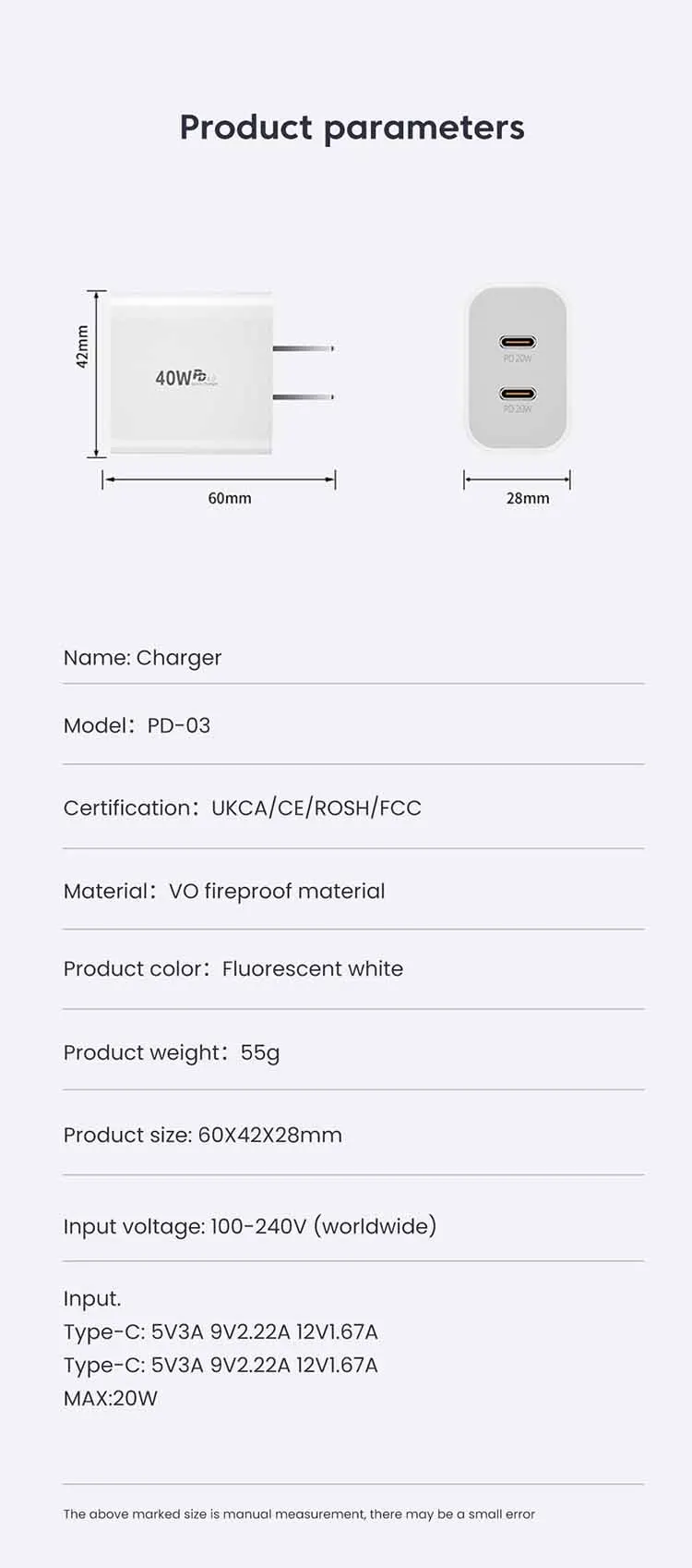 Be the first to review “40W USB C Charger Dual Type C PD Fast Charging Charger Wall Adapter For iPhone 15 iPad Samsung Xiaomi 10A USB C Charging Cable”