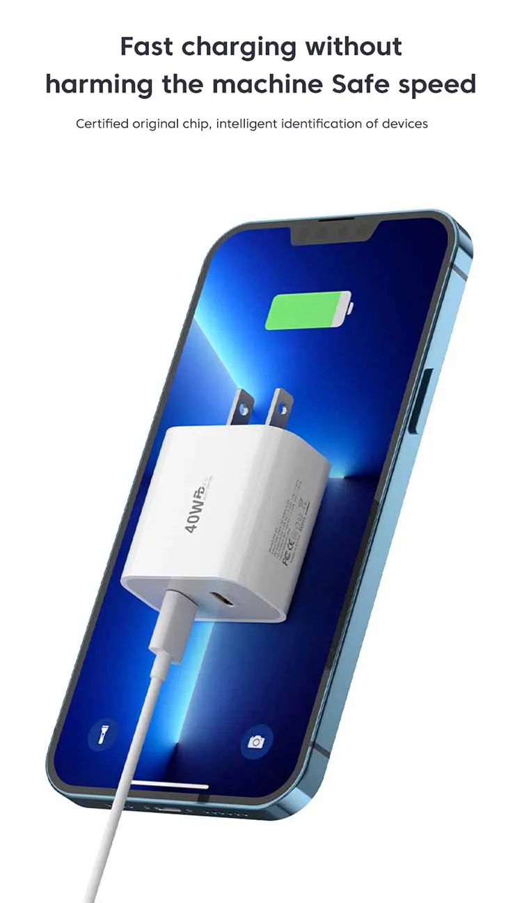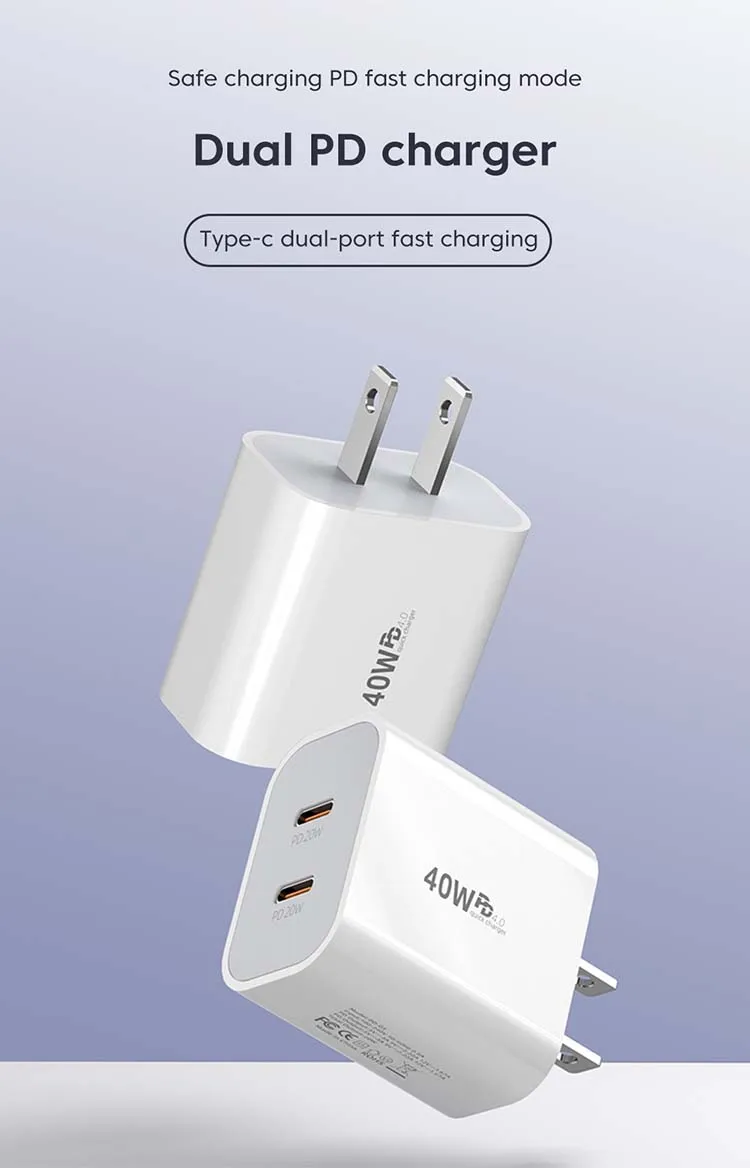 40W USB C Charger Dual Type C PD Fast Charging Charger Wall Adapter For iPhone 15 iPad Samsung Xiaomi 10A USB C Charging Cable