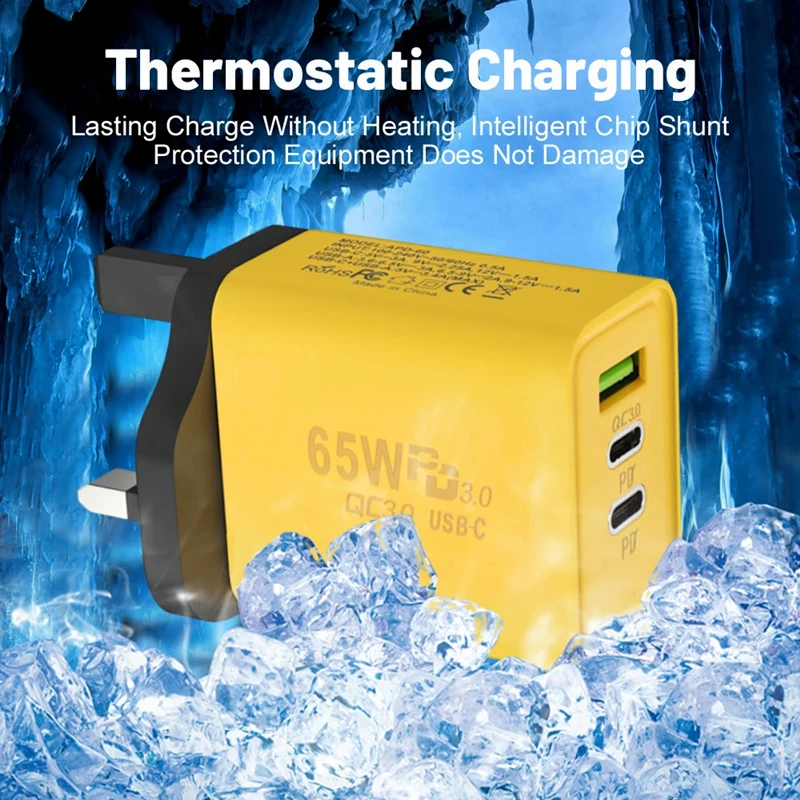 The 65W 3-port charger features a versatile charging solution with 1 USB a and 1 USB C port, as well as a PD 33W output, allowing you to easily charge multiple devices at the same time.