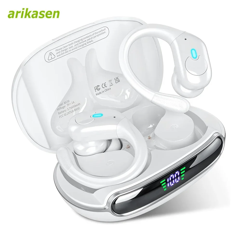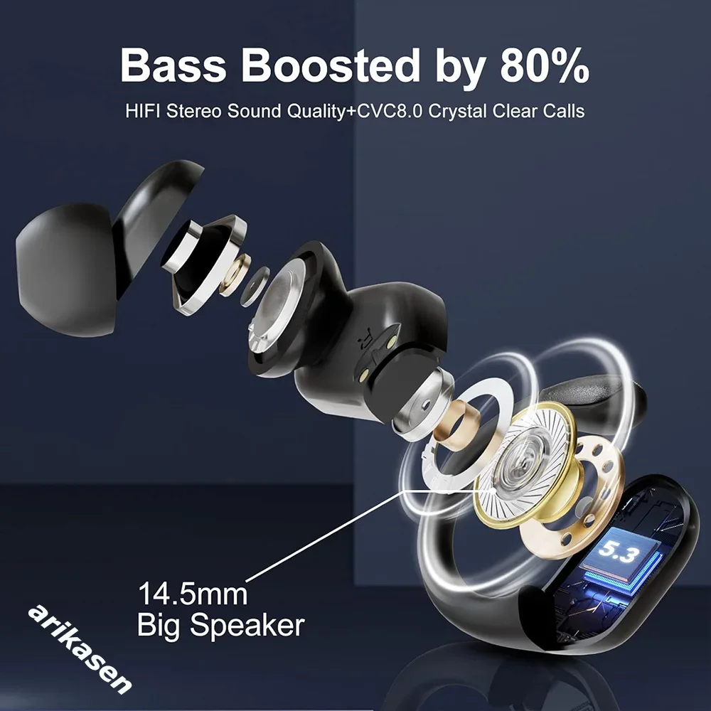 Arikasen Headphones Wireless Earbuds Sport Bluetooth 5.3 Ear Buds Over-Ear 3D Stereo Headset with Earhooks 60H Wireless Earphone