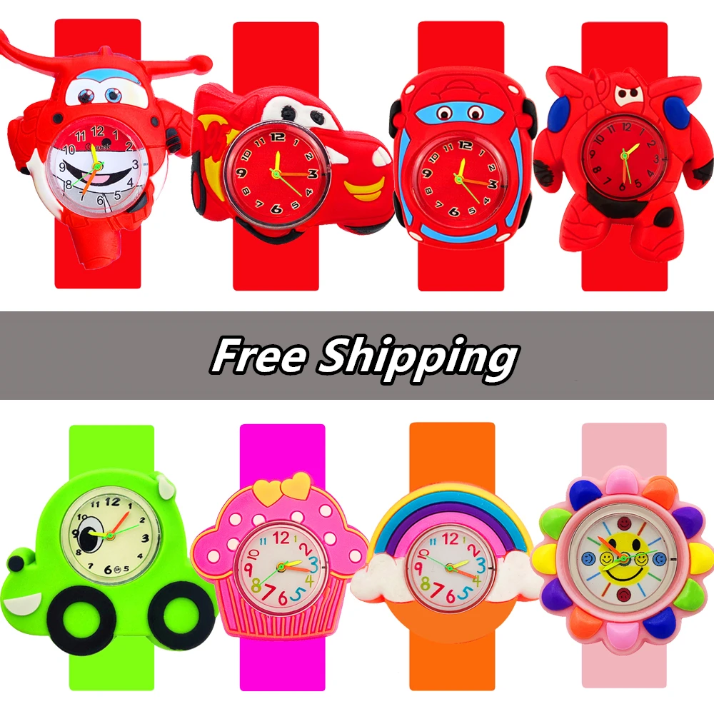 Free ShippingBaby Cartoon Toys Airplane Car Children Watch Bend Strap Kids Watches for Boys Girls Clock Super Flying Man Watch Montre Enfant Christmas Gift