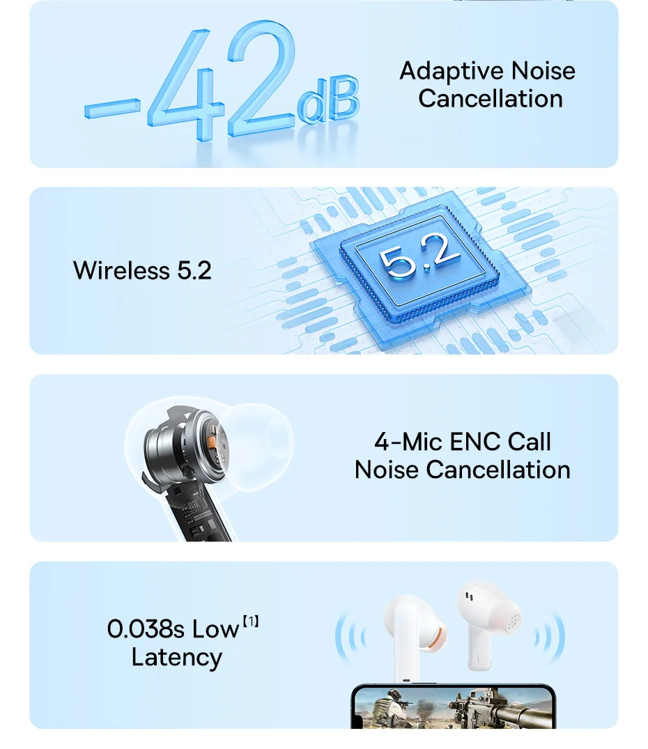 Baseus Bowie M2 Earphone, ANC TWS Wireless Bluetooth 5.2 Headphones, Active Noise Cancelling Earbuds, with Mic ENC Headset