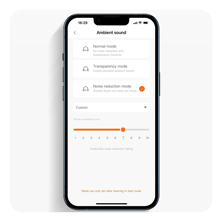 3 different noise cancellation modes to choose in the app. 10 adjustable settings for everynoisy situation.