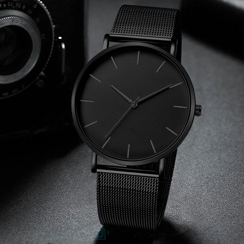 - Men quartz watch: Luxury black relojes