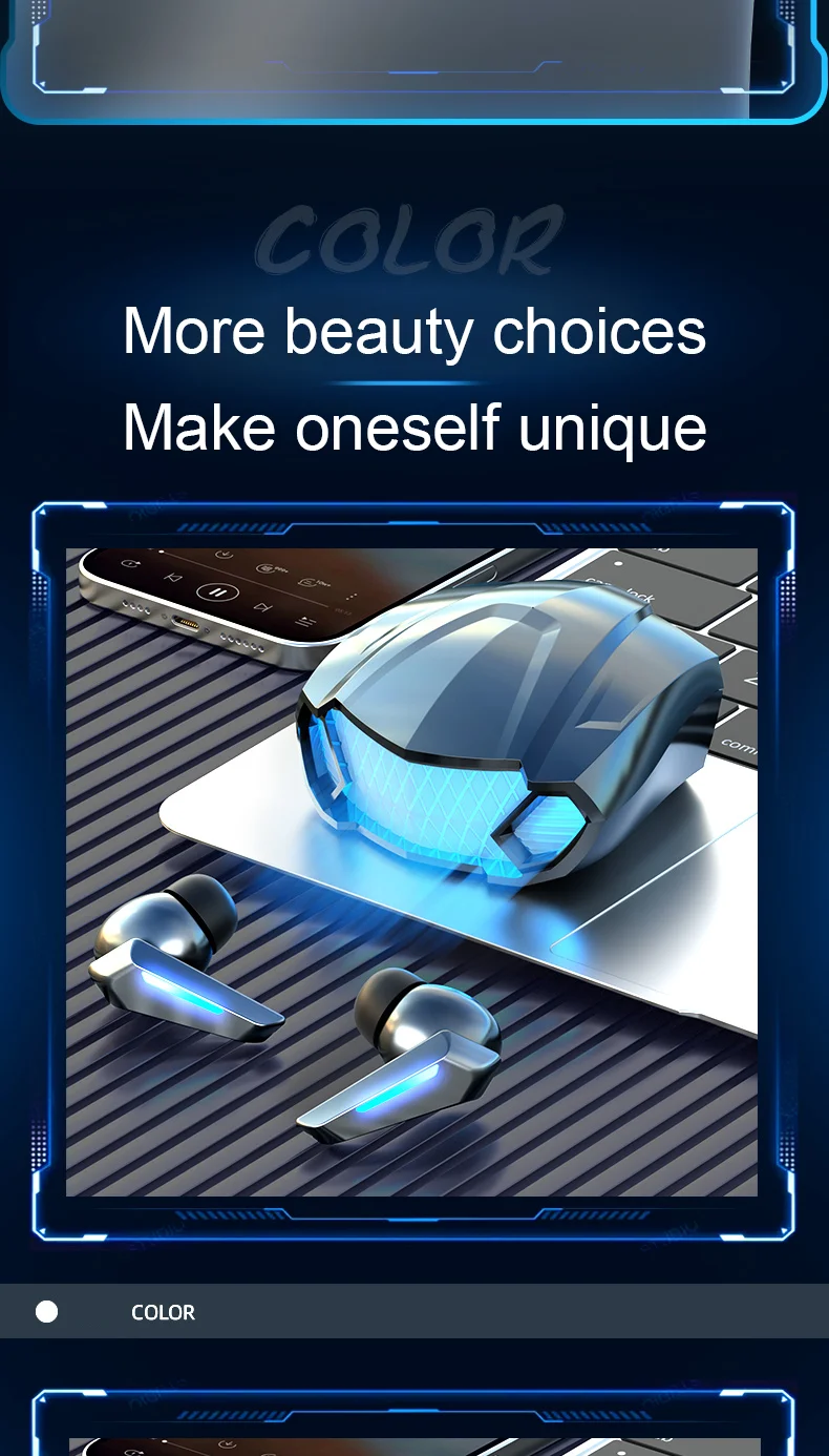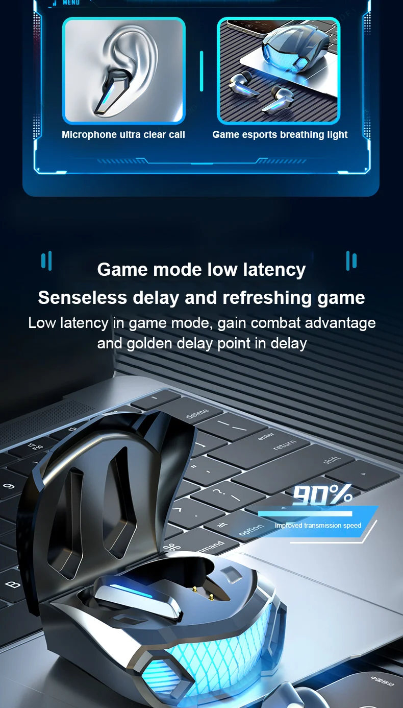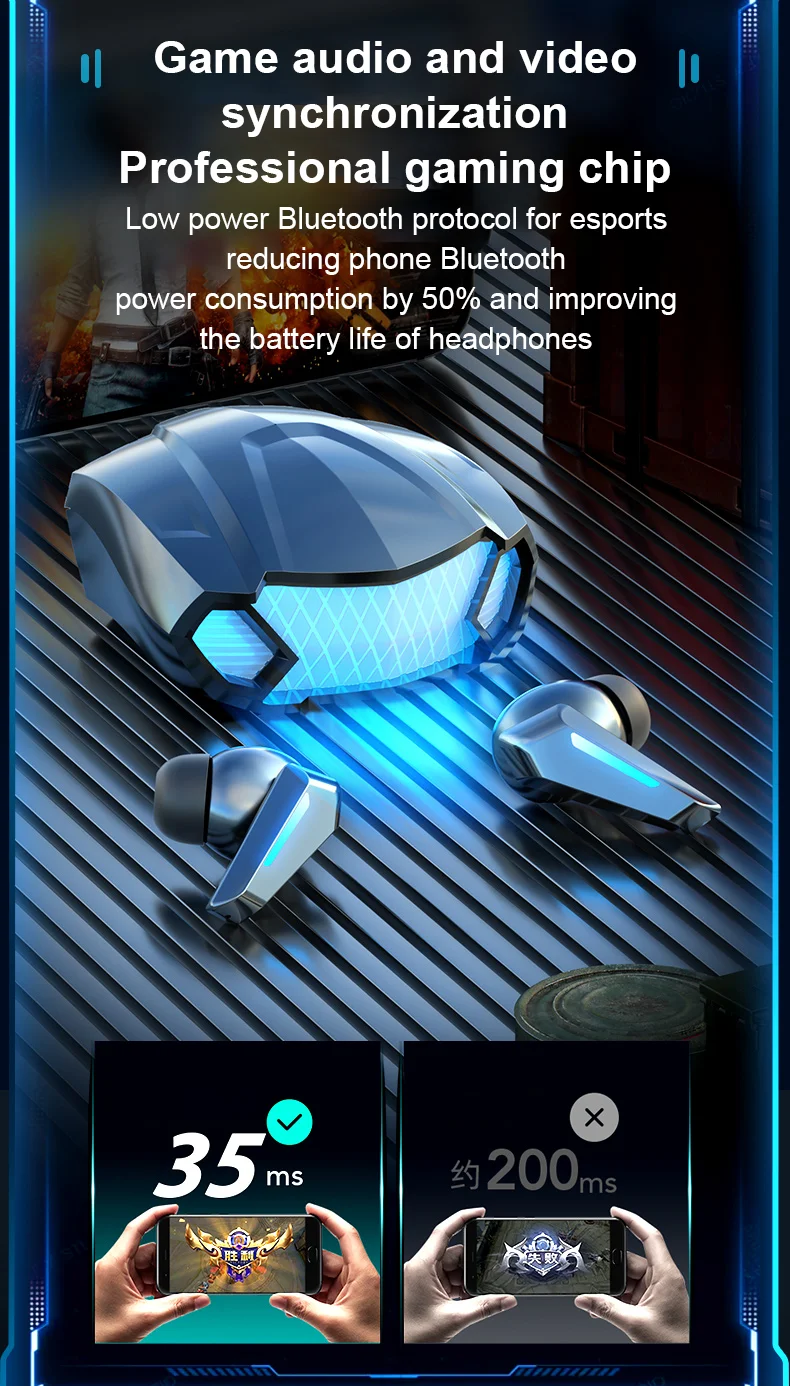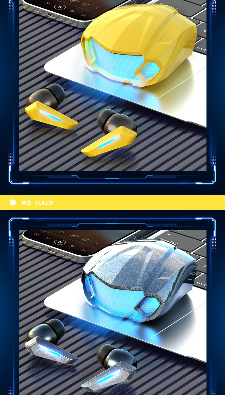 Bluetooth Earphones Wireless Headphone LED Light Game Music Dual mode Earbuds With Mic Noise Reduction Stereo Headset TWS