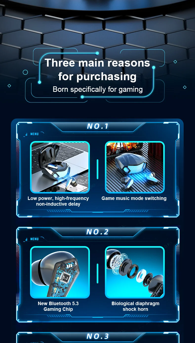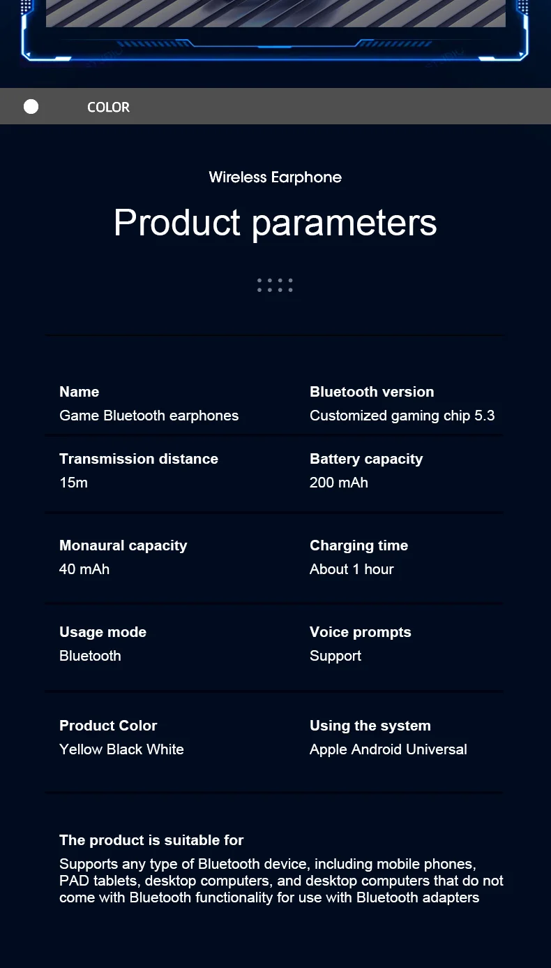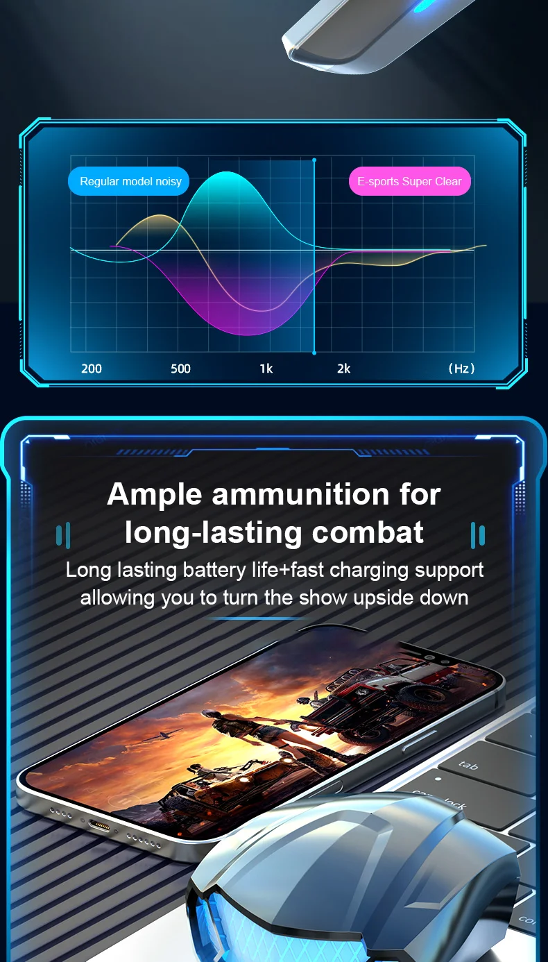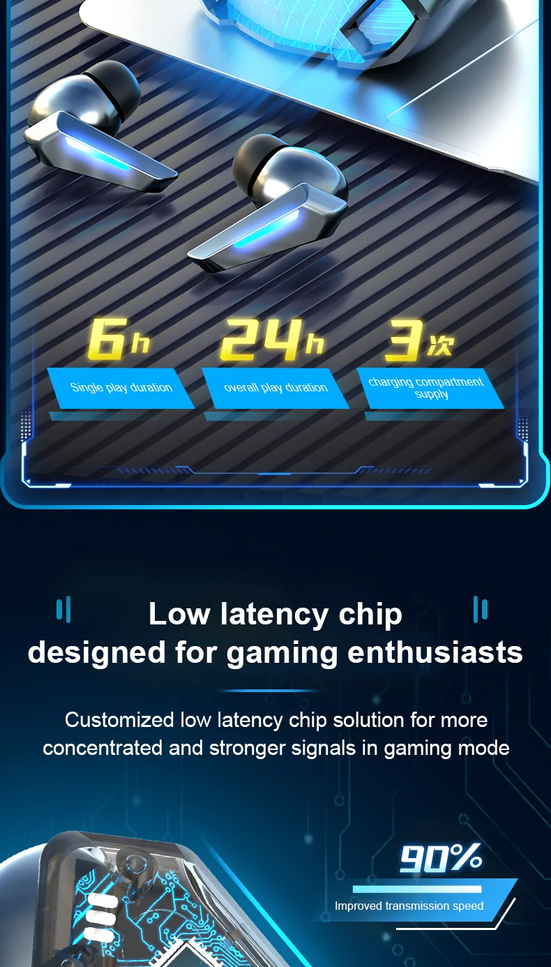 Bluetooth Earphones Wireless Headphone LED Light Game Music Dual mode Earbuds With Mic Noise Reduction Stereo Headset TWS