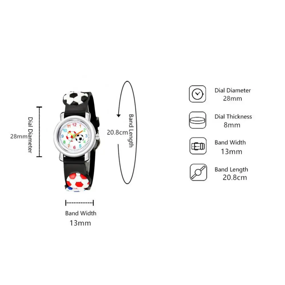 Kids Football Pattern 3D Relief Girls Cute Sports Boys Cartoon Gift Wrist Watch