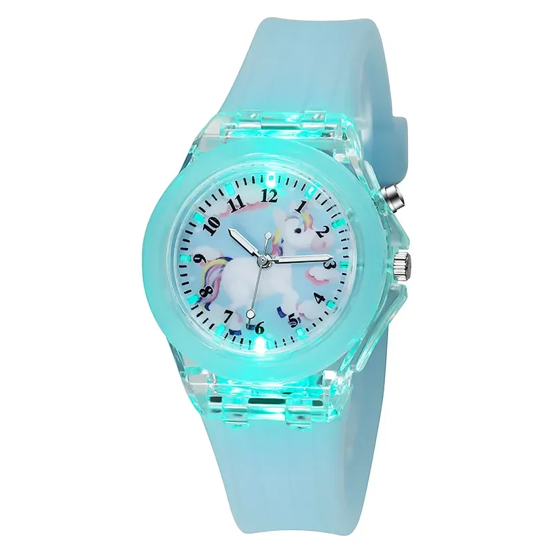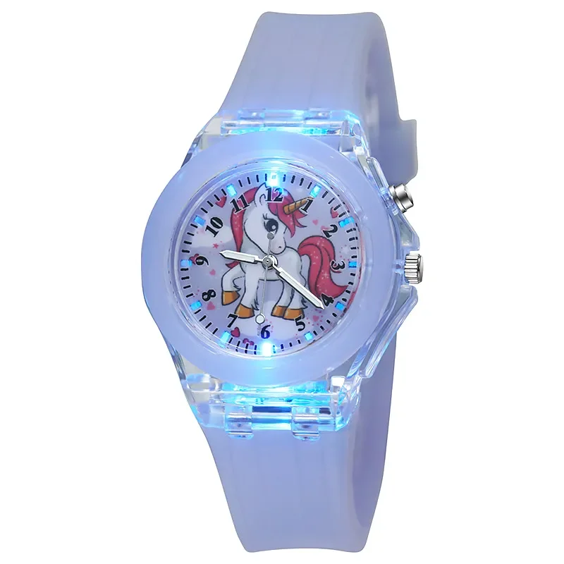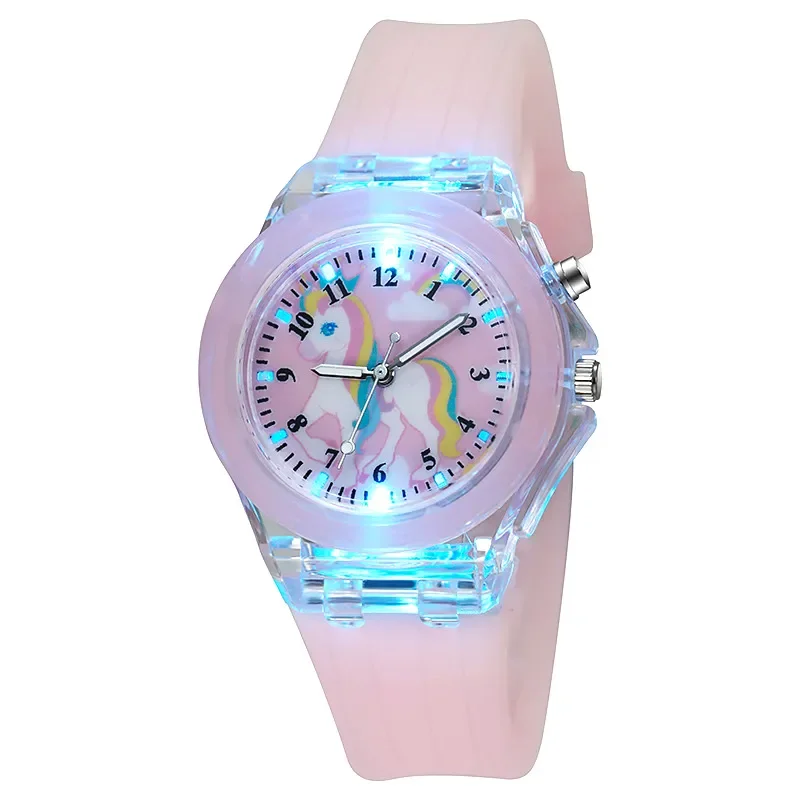 Fashion Cartoon Unicorn Kids Watches Girls Silicone Strap Flash Light Children Watch Clock Quartz Wristwatches Reloj Infantil