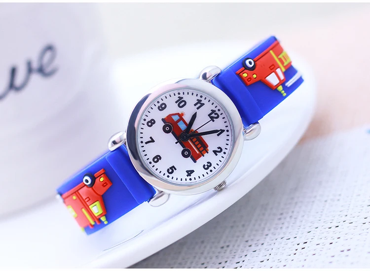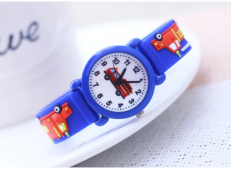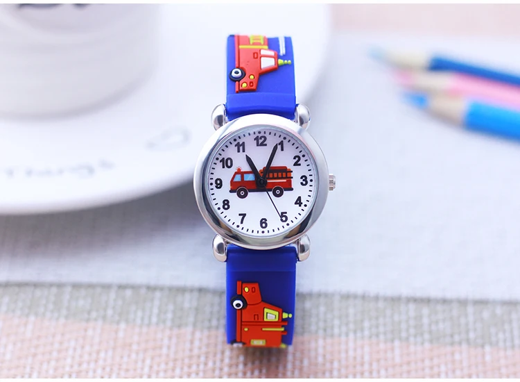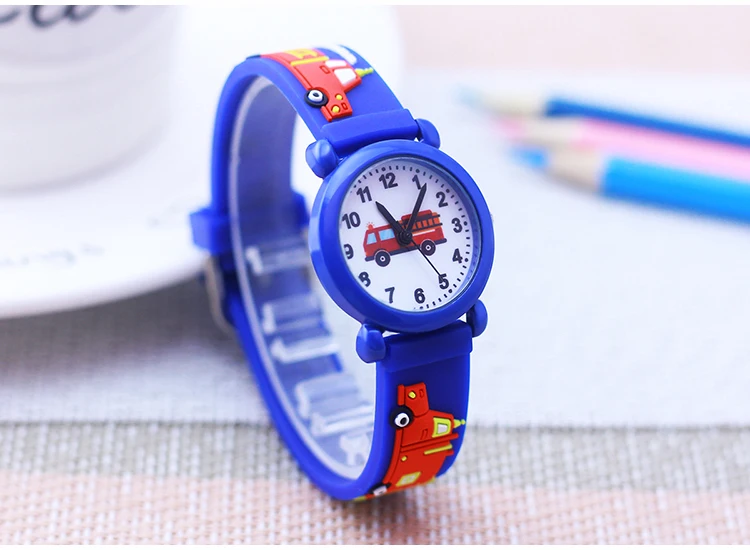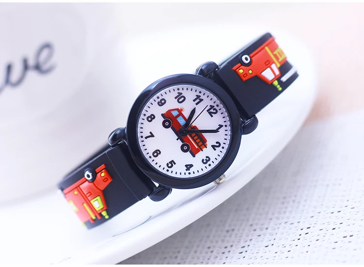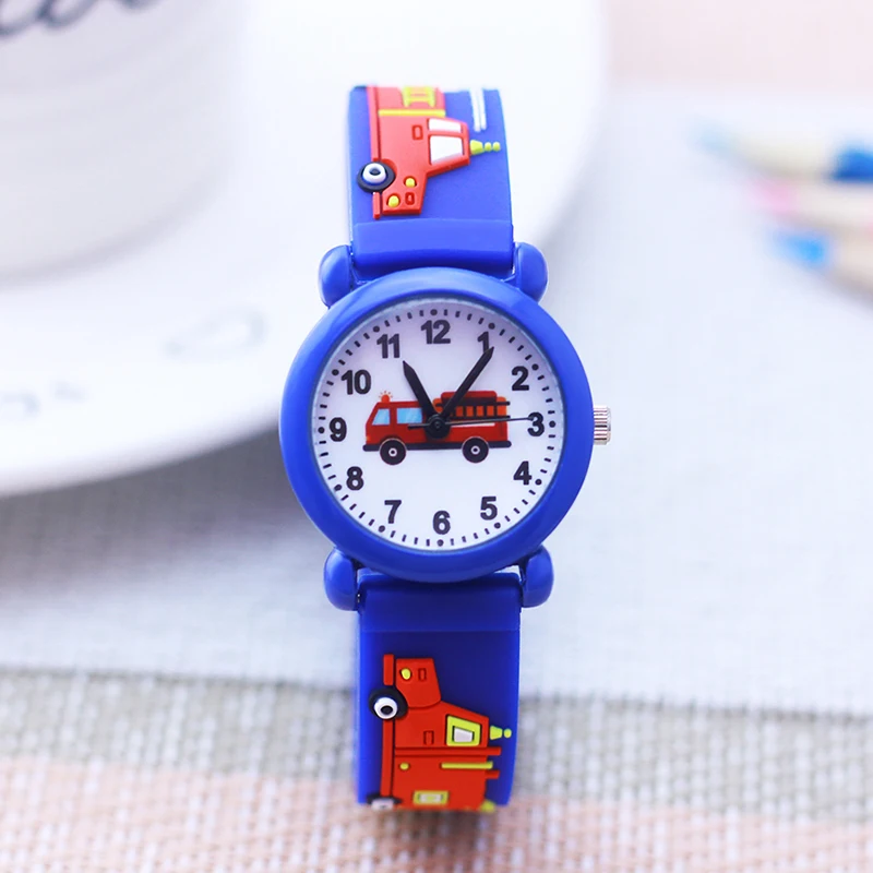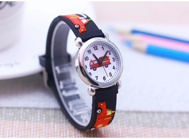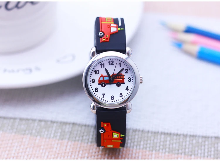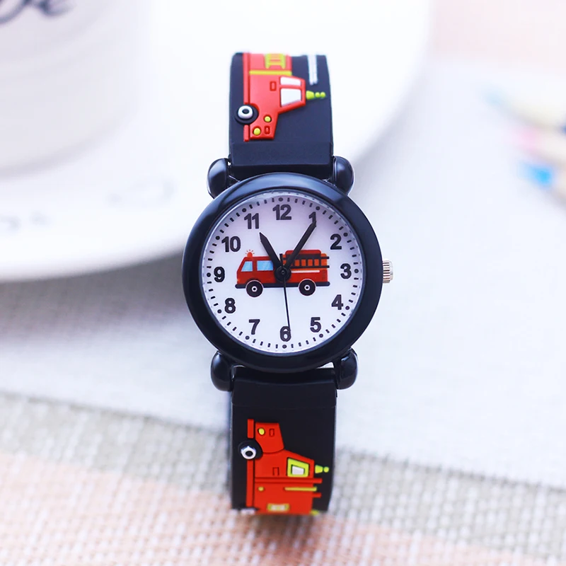 Cartoon Silicone Fire Truck Strap And Face Quartz Watches Children Boys Girls Man Fashion Sports Waterproof For Over 3rd Kids