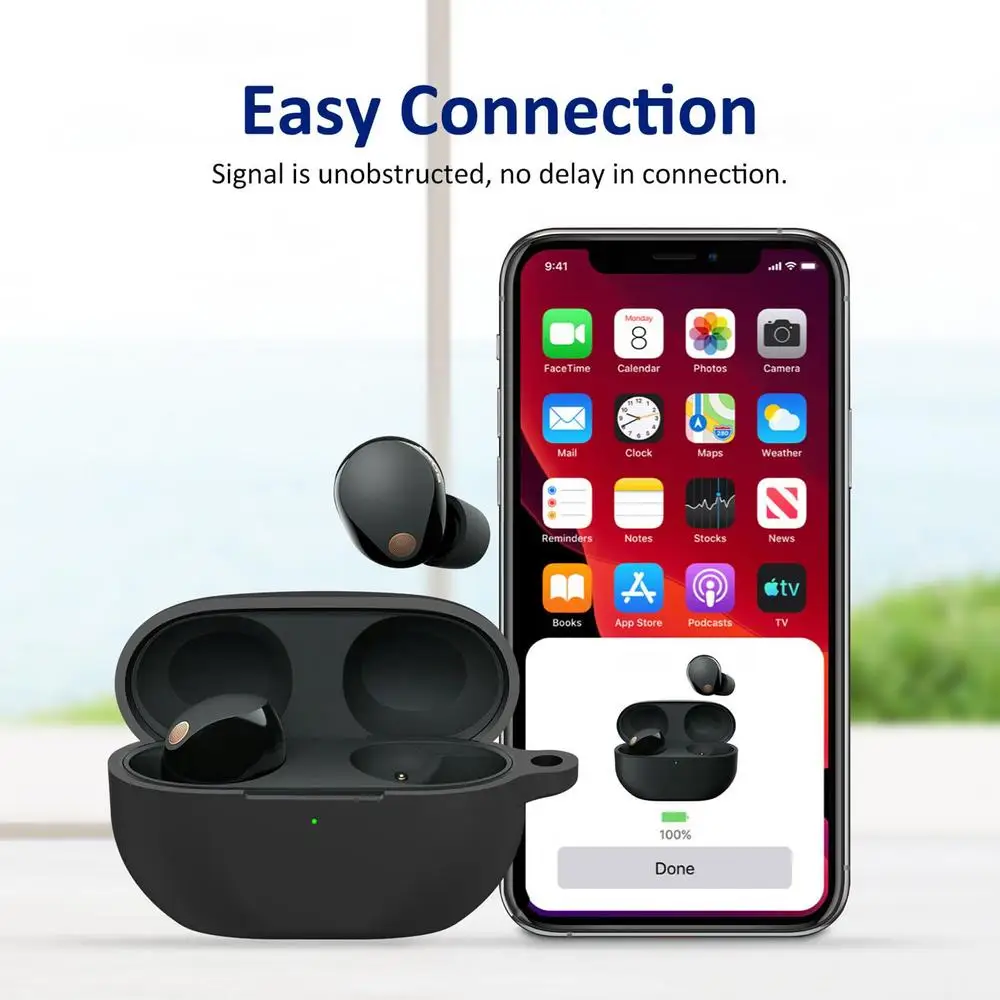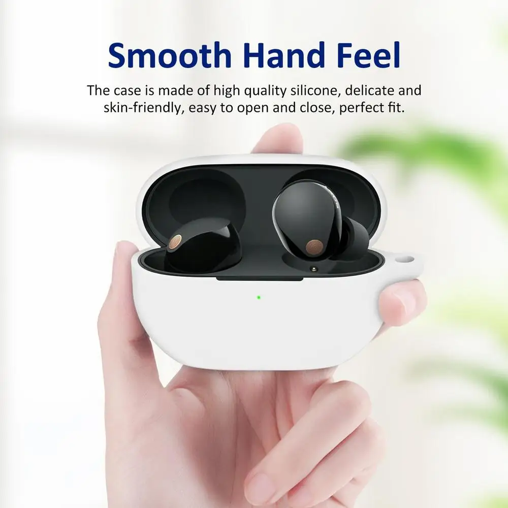 1.Shockproof Design: Specially designed for WF-1000XM5 wireless earphones, this soft silicone case protects your device from scratches, drops and bumps. It also comes with a hook for easy portability. Note: Only the silicone case and hook are included, not the earphones or other accessories.