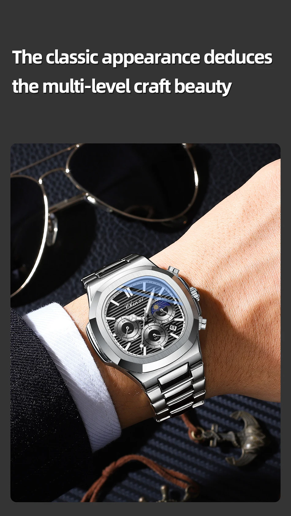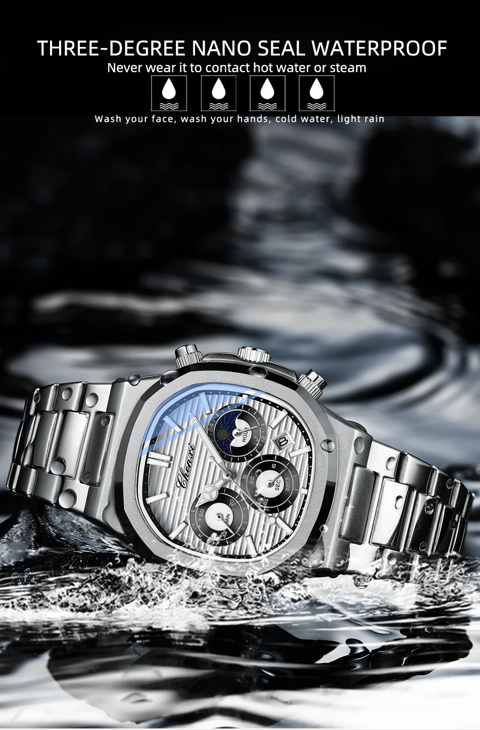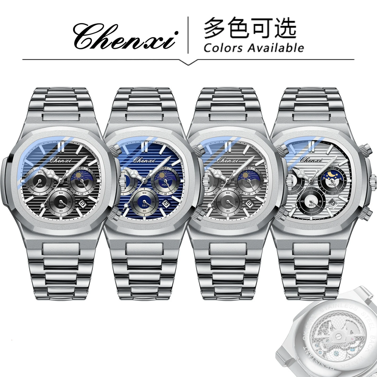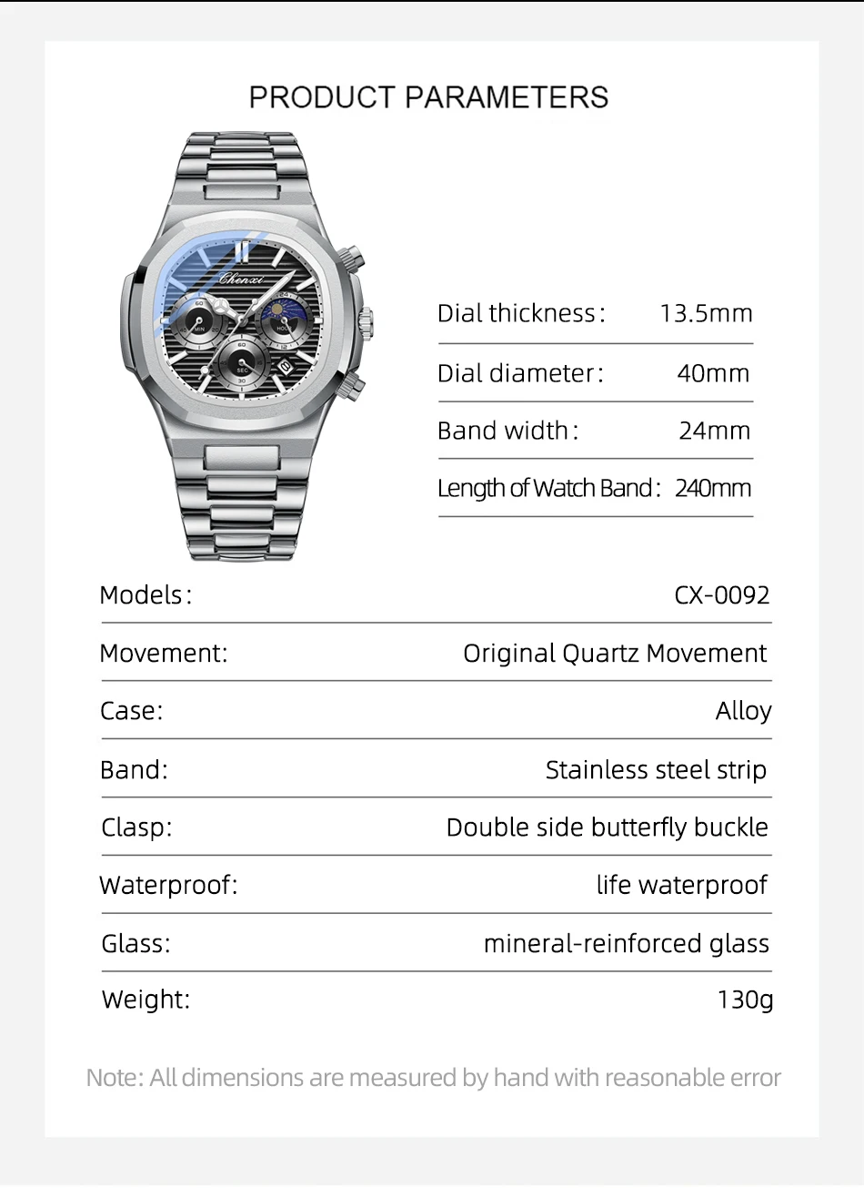 Be the first to review “CHENXI 0092 Fashion Casual Watches For Men Luminous Moon Phase Chronograph Quartz Man Watch Male Wristwatch Waterproof Clock” Cancel reply