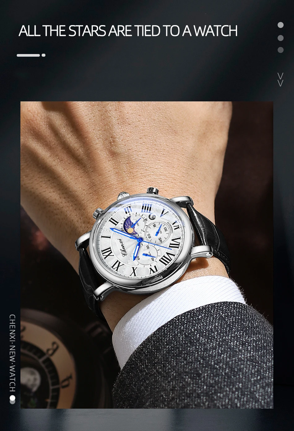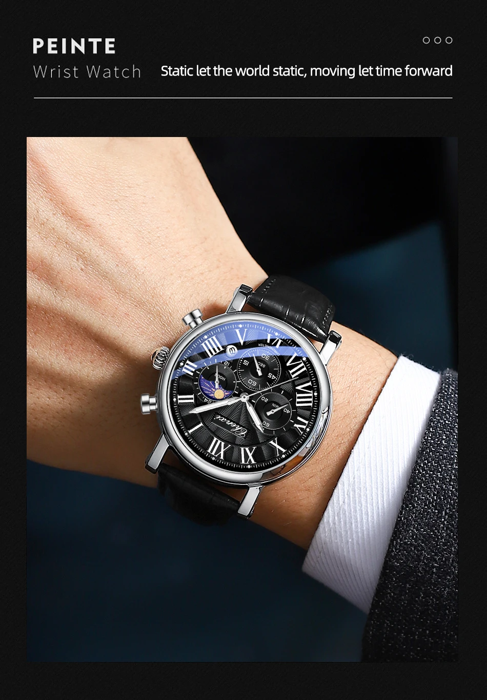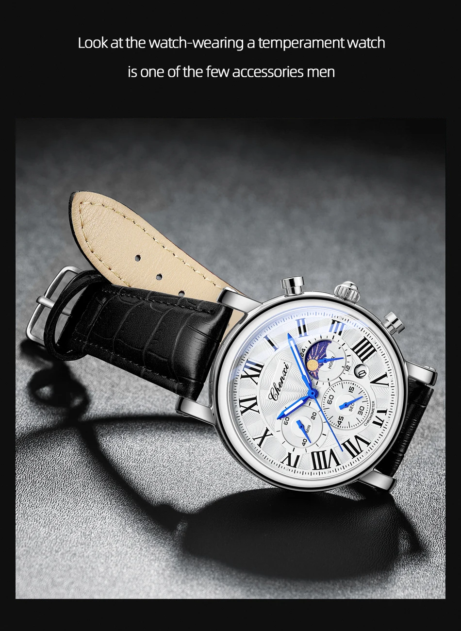 – Luminescent hands/water-resistant/moonphase/chronograph