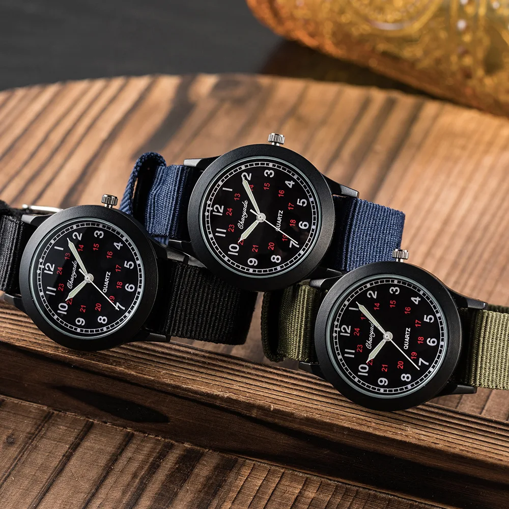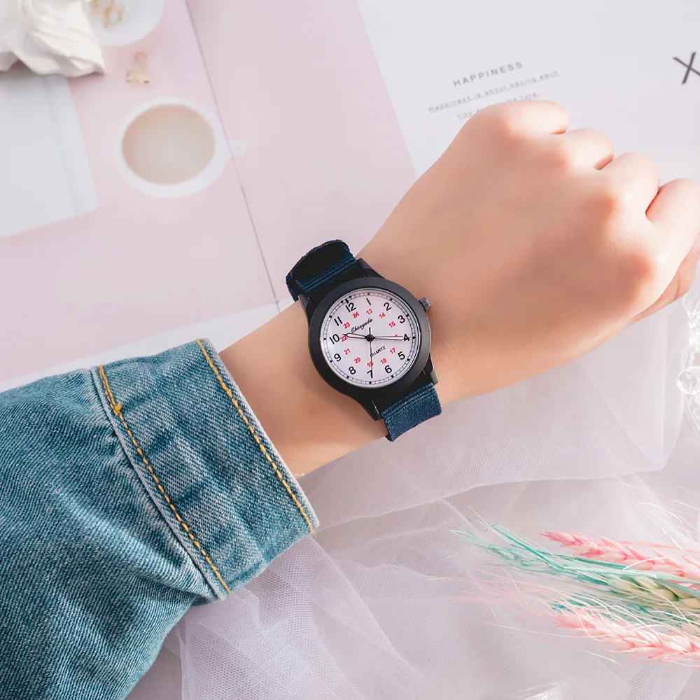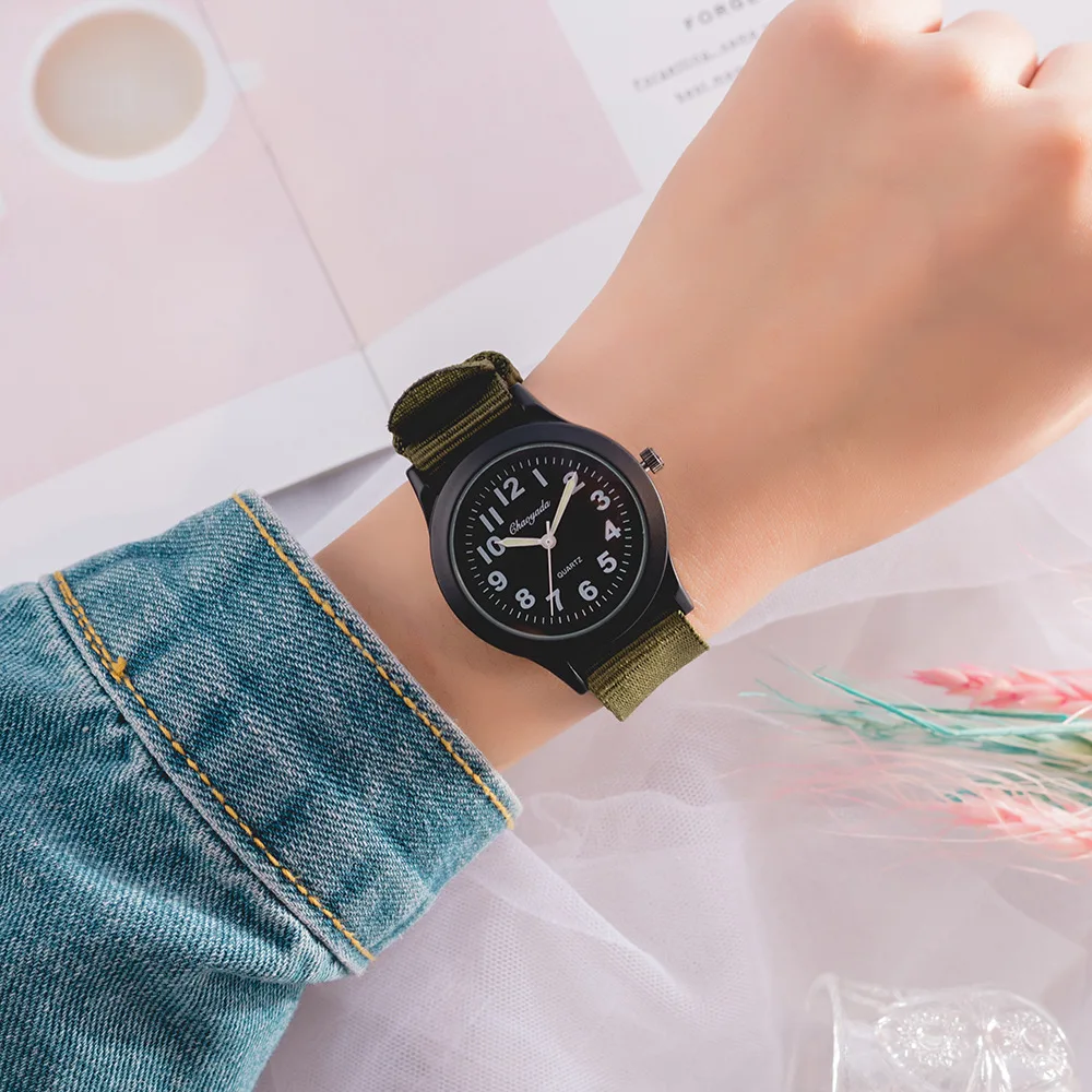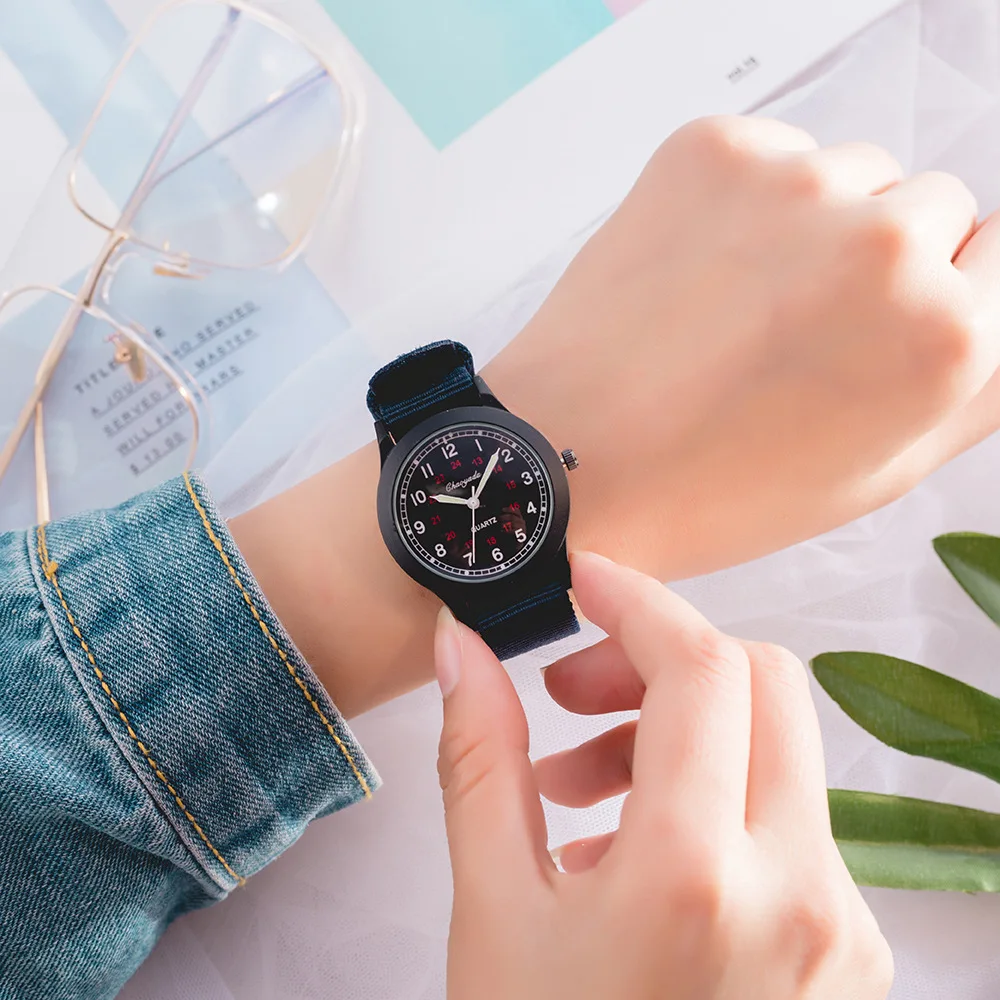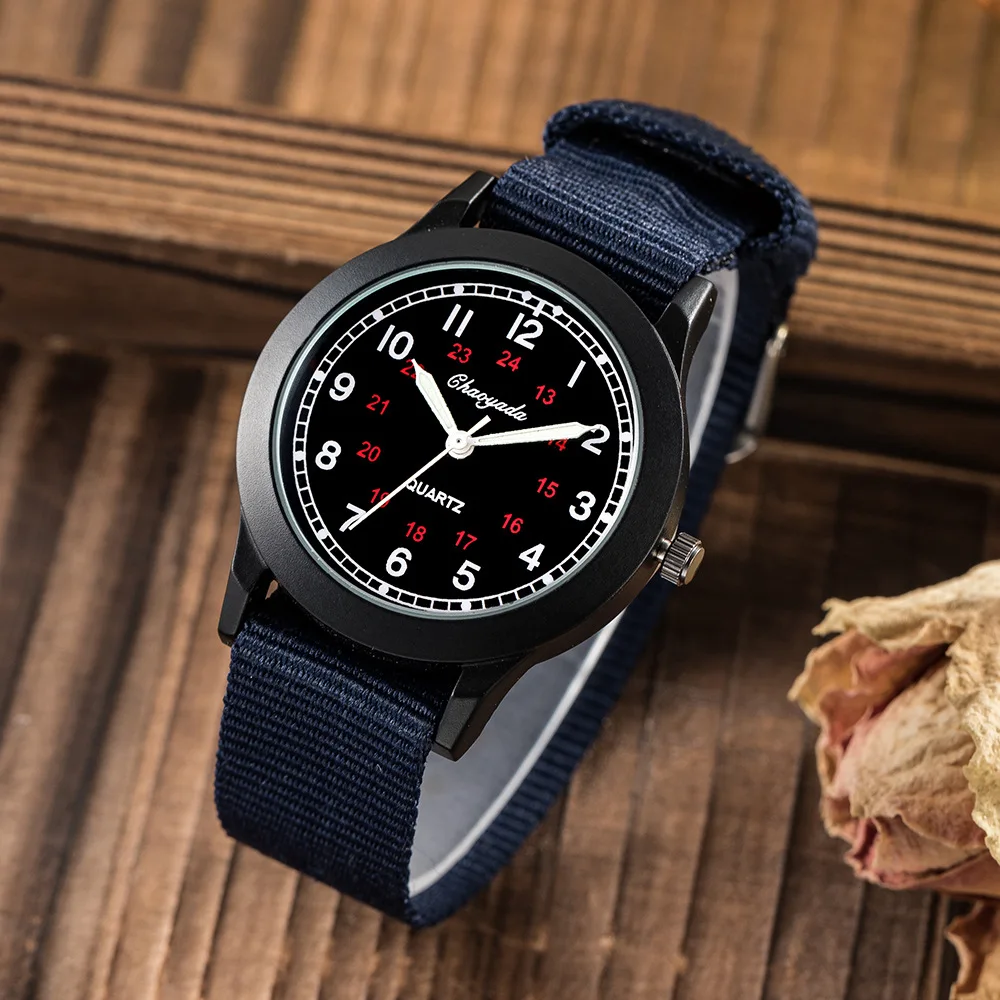 Children Boys Girls 24hours Canvas Luminous Pointer Quartz Wristwatches Kids Students Waterproof Watches for Girls Boys Relojes