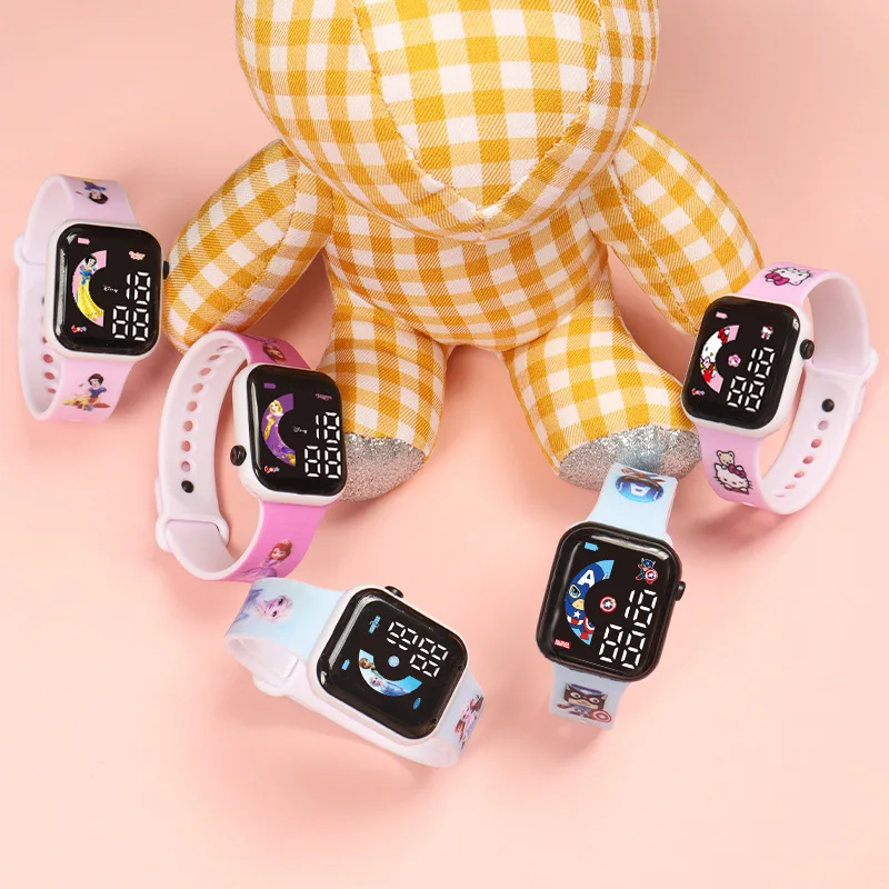 Disney Watch Spiderman Frozen Elsa Mickey Kids Watch Print Strap Button LED Square Waterproof Electronic Watch Boys Girls Gifts