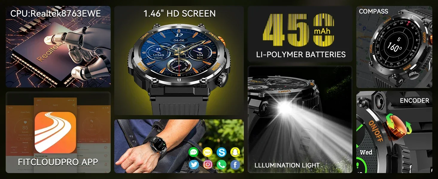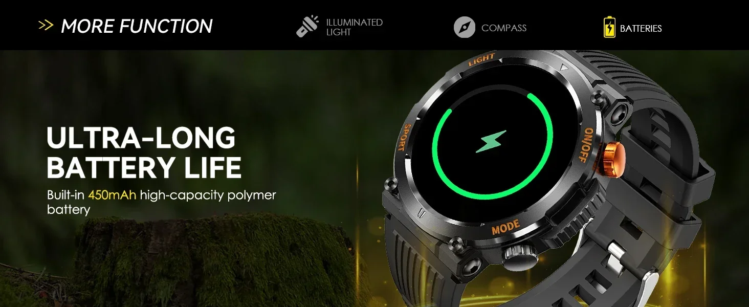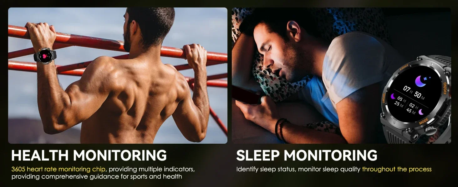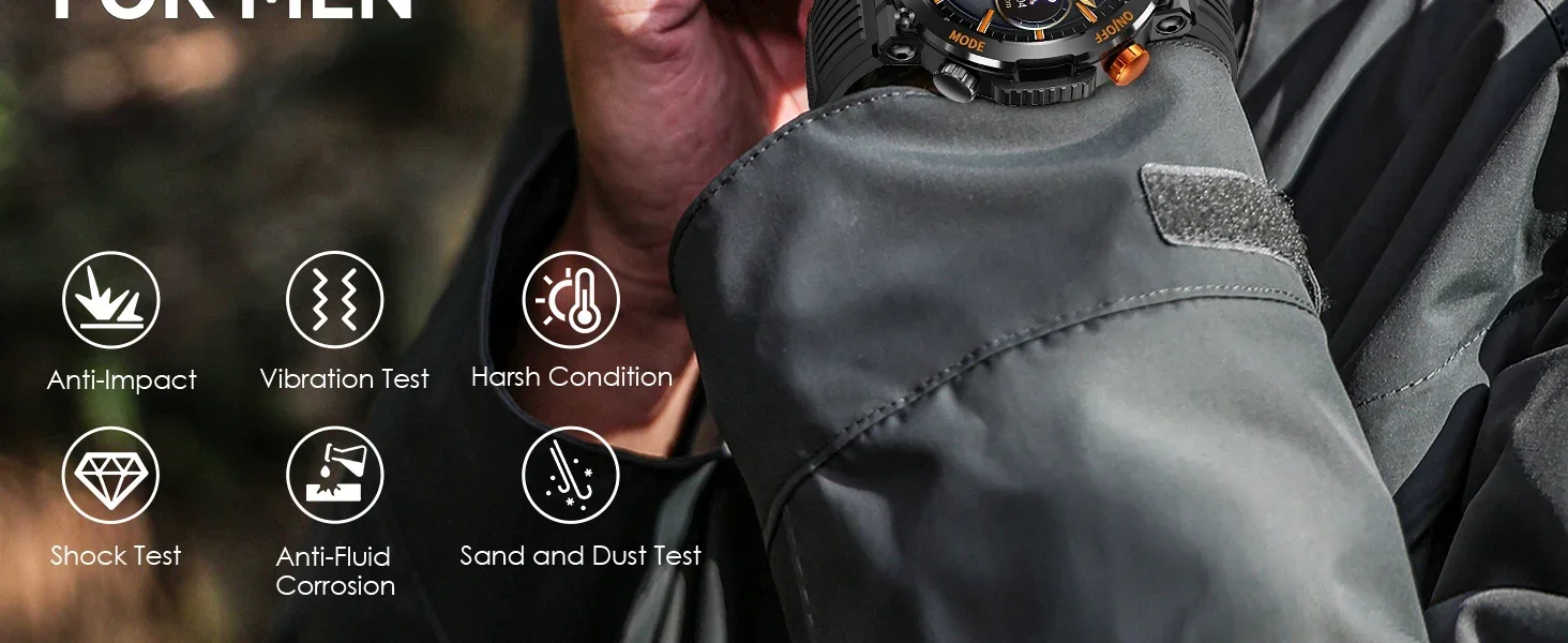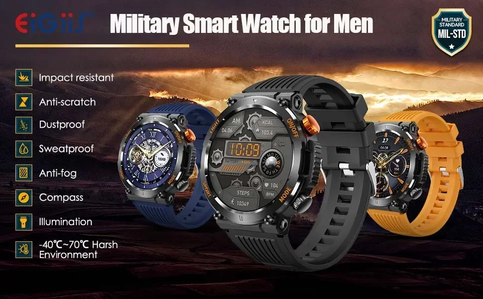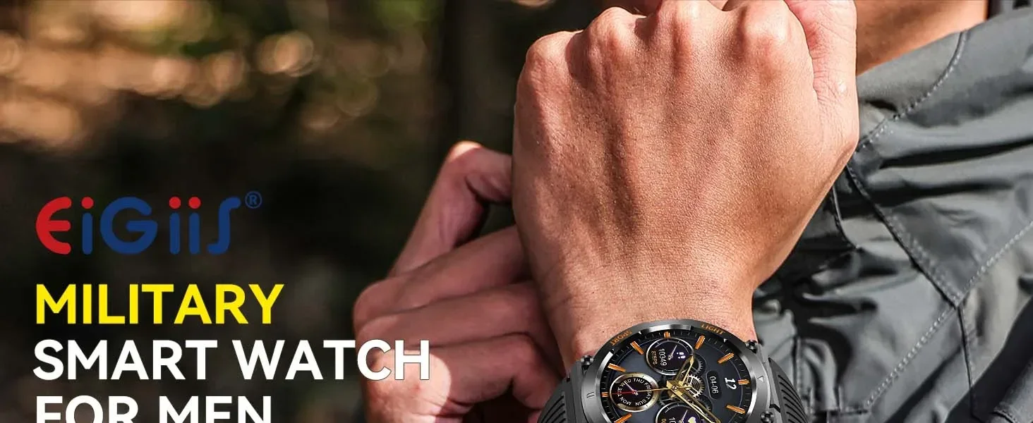 EIGIIS Military Smart Watch For Men 100+ Sports Modes Fitness 450mAh Tracker IP67 Waterproof Heart Rate Long Life Battery HT17