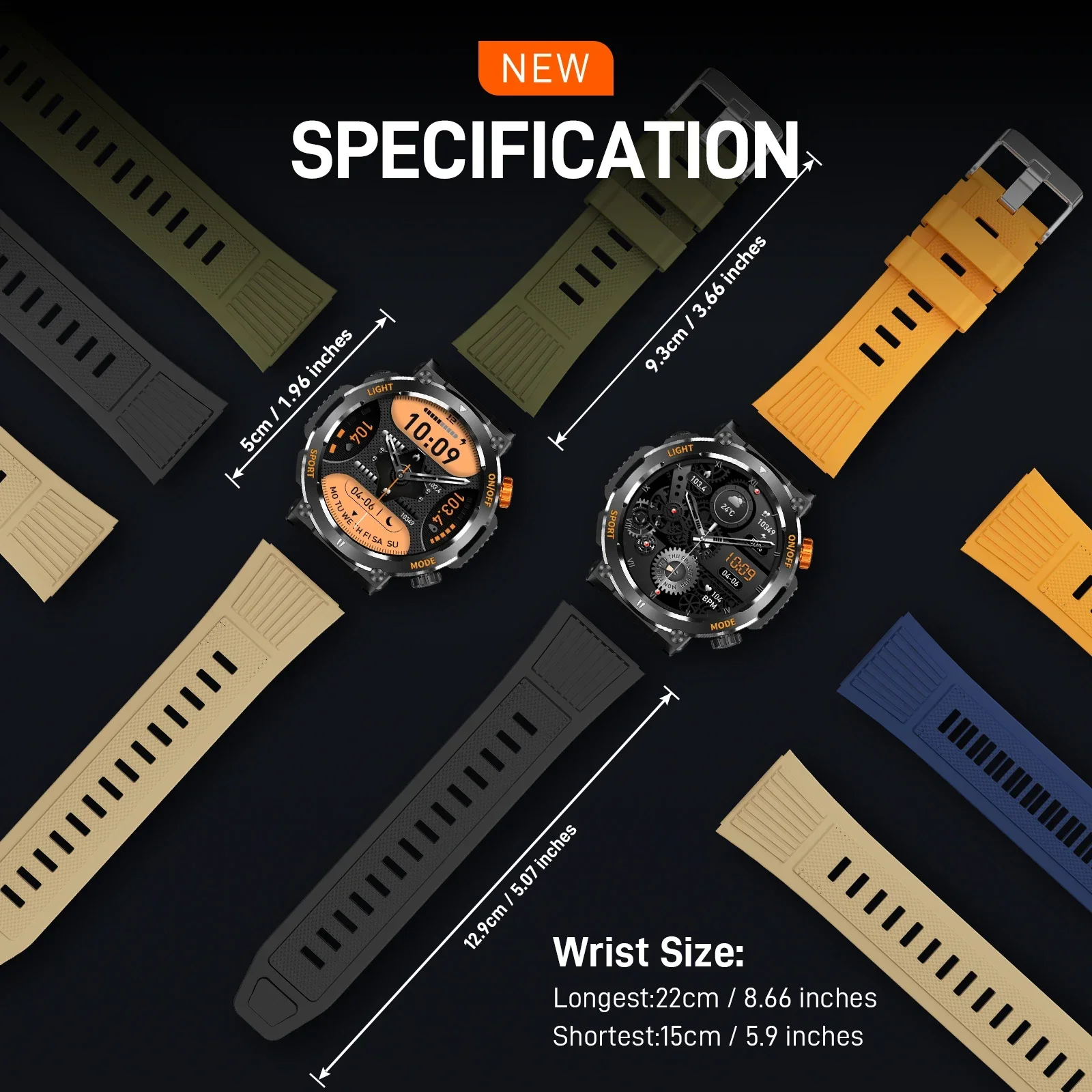 Health monitoring: Real-time heart rate, blood pressure, SpO2 (blood oxygen) level measurement,women’s physiological cycle record, sleep score, calorie and calorie tracking.