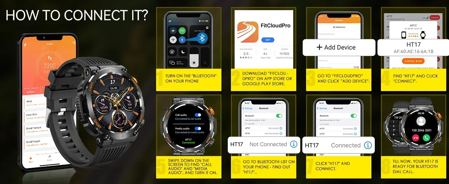 Be the first to review “EIGIIS Military Smart Watch For Men 100+ Sports Modes Fitness 450mAh Tracker IP67 Waterproof Heart Rate Long Life Battery HT17”