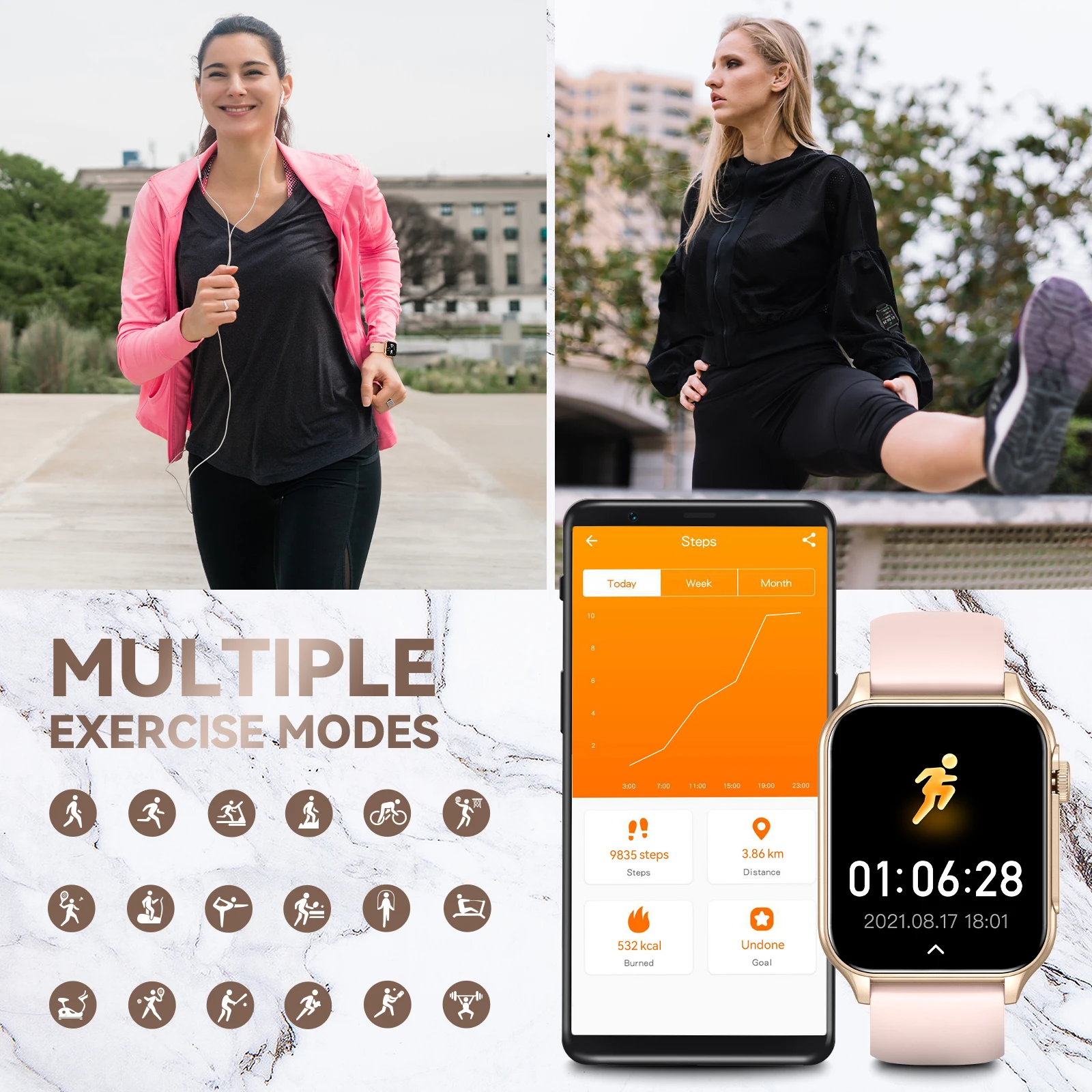 - Activity Tracked: Steps Tracker,Distance Tracker,Calorie Tracker,Activity Tracker