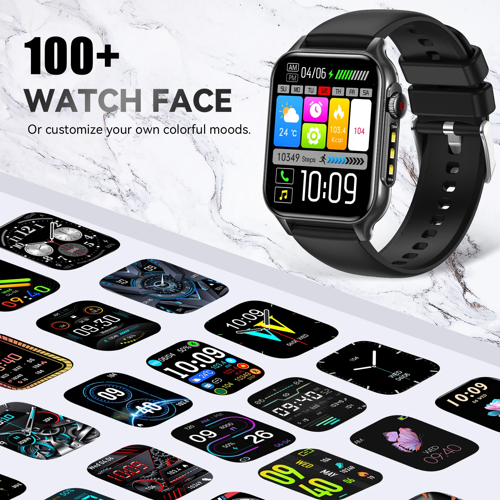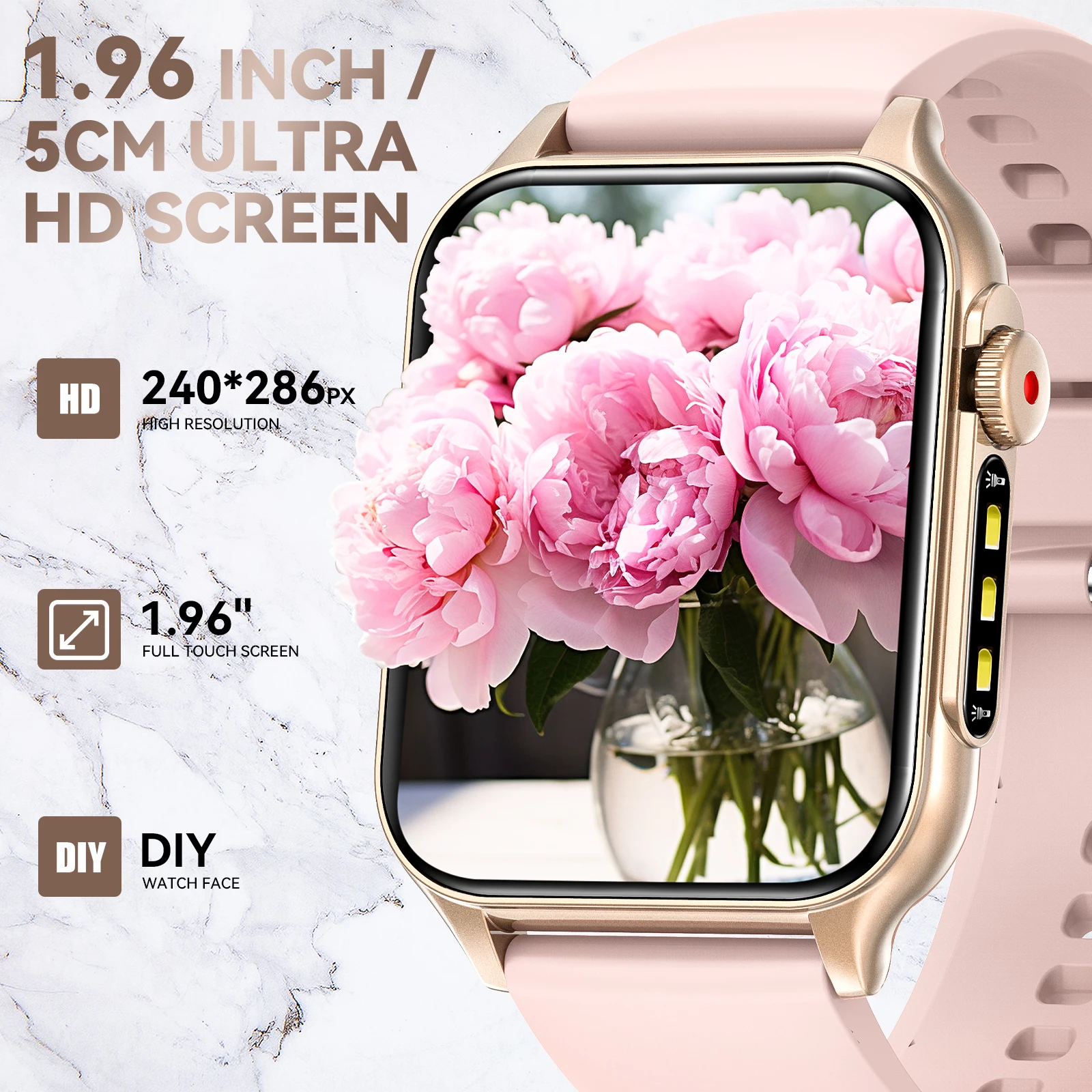 1.96-inch high-definition screen, thin and lightweight body, tempered glass, IP67 waterproof, 100+ dials