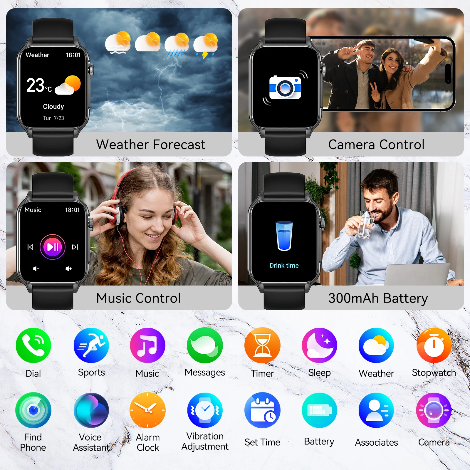 Incoming call reminder, APP message notification, drink water reminder, sedentary reminder