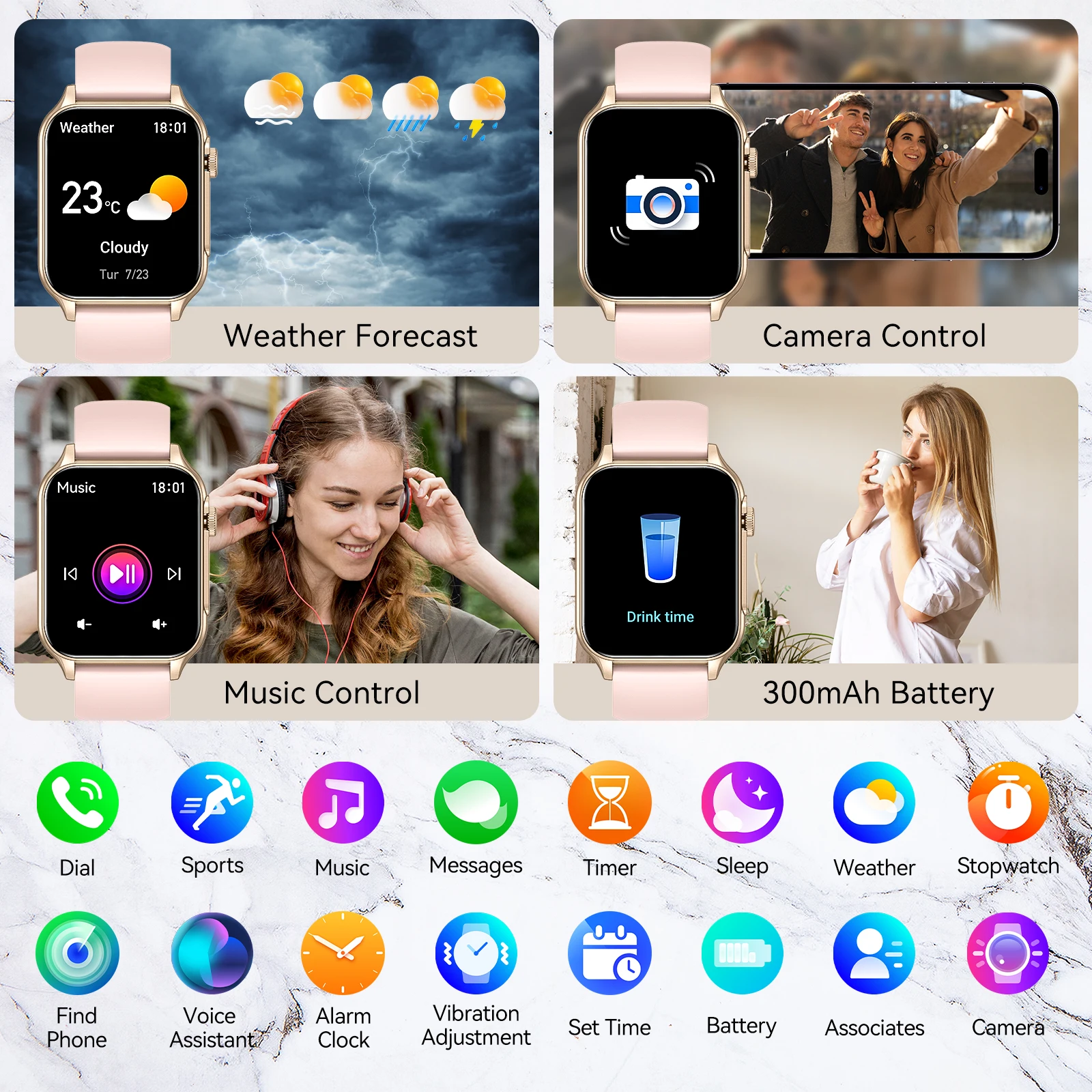 Voice assistant, turn your wrist to light up the screen, find mobile phone, remote camera, do not disturb mode, world clock, music control, timer, stopwatch, alarm clock, calendar, weather forecast, calculator, etc.