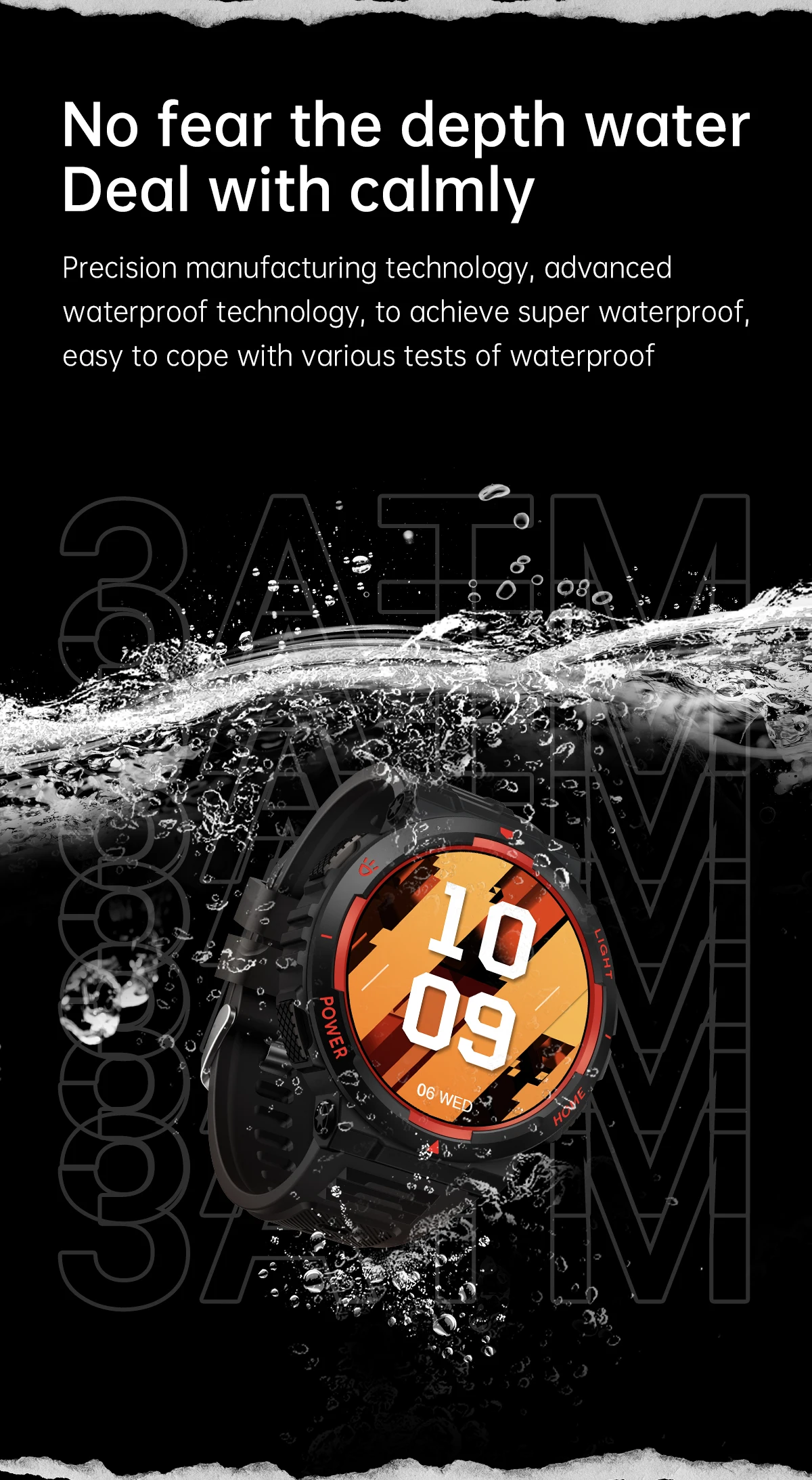 EIGIIS Men’s Military Smartwatch is designed for outdoor enthusiasts! The KT75 smartwatch has 3 ATM water resistance, so you can even swim with it.