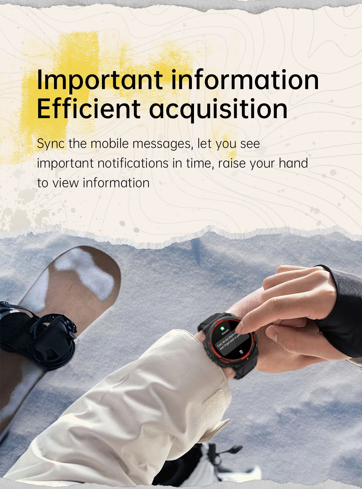 To bring convenience to your life, EIGIIS men’s smart watch is equipped with many functions, including alarm clock, shake to take photos, weather display, music, voice assistant, raise your wrist to light up the screen, etc. Our military smartwatch is equipped with a 400mAh large-capacity battery, providing long-lasting power for long outdoor adventures or busy days. Spend more time using your smartwatch and worry less about charging.