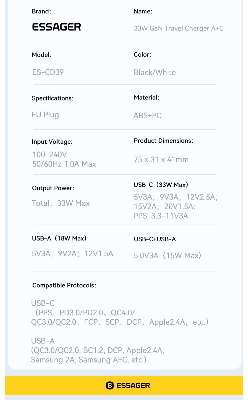 • Brand Name: ESSAGER