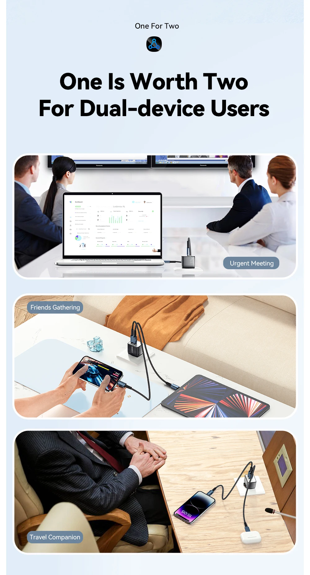 • Dual Port :With two ports, you can charge two devices at once, saving time and hassle.