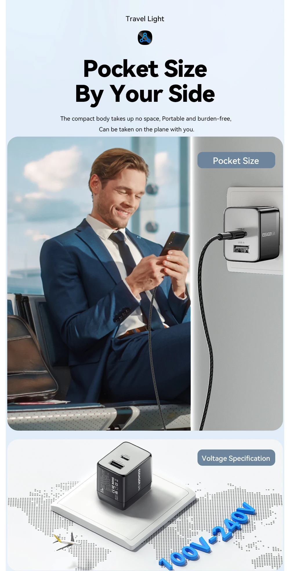 • Portable Design :Its compact size and foldable plug make it easy to carry around, perfect for travel or on-the-go use.