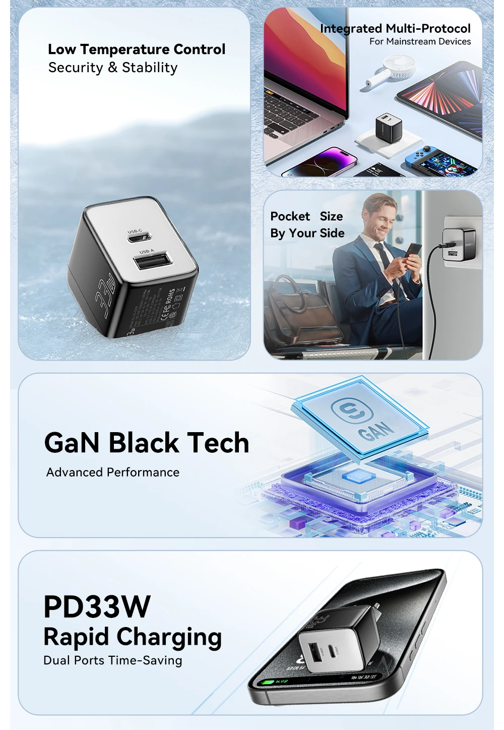 • GaN Technology :The charger uses GaN technology, which makes it smaller and more efficient than traditional chargers.