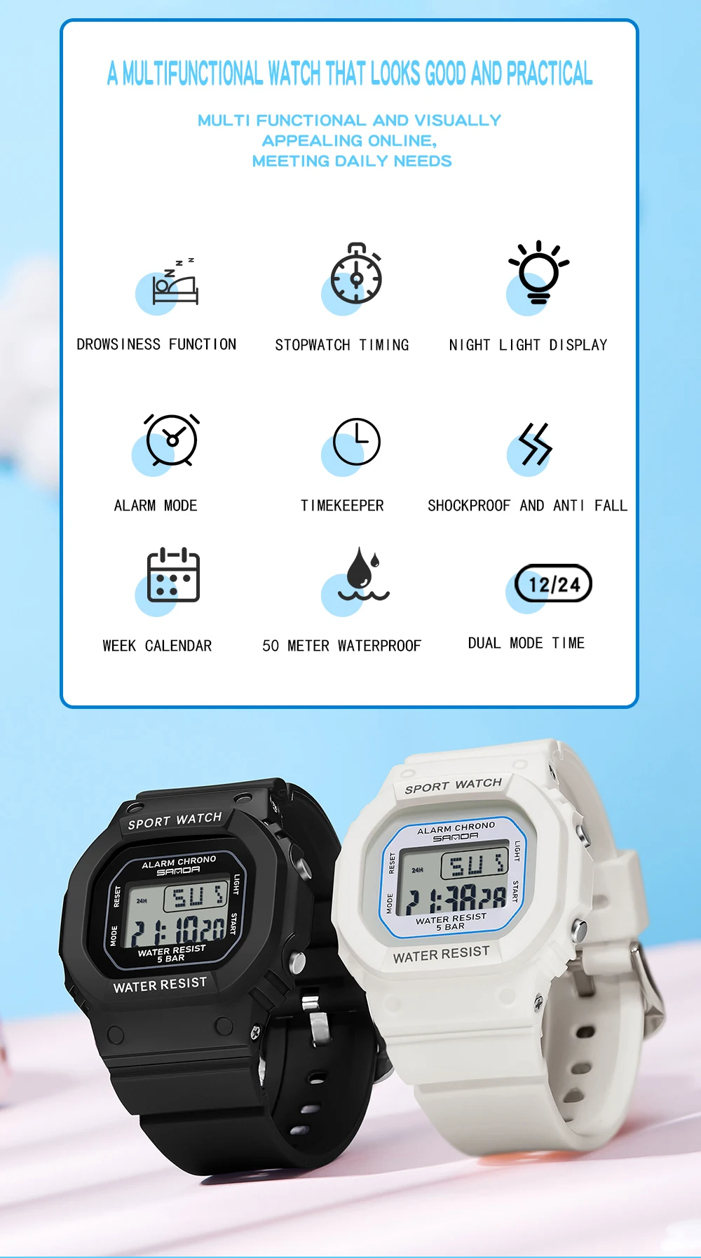 • Feature: STOP WATCH,Back Light,Shock Resistant,LED display,Repeater,Luminous,Auto Date,Chronograph,Complete Calendar,Water Resistant,SOLAR,Alarm,swim,Week Display