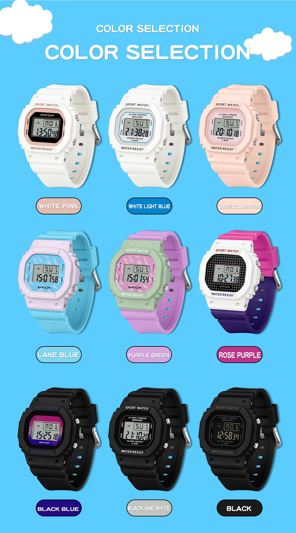 Be the first to review “Fashion Sanda 393 Top Brand Boys Girls Led Digital Children Sports For Waterproof Electronic Outdoors Casual Gift Student Watch”