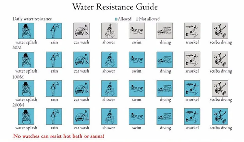 - Water Resistance Depth: 3Bar