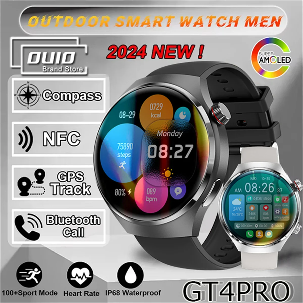 Dear friend, thank you very much for your support. This is a multifunctional sports smartwatch! This product has many very useful features! For example, NFC function, you can open the door through the watch! Bluetooth call function, after connecting to the phone Bluetooth, you can directly make a call! AI voice assistant function, opening the watch function through voice! There are also some medical functions that can monitor heart rate, blood pressure, and pay attention to your health! All of these are very useful features!