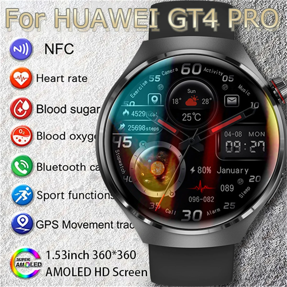 - Resolution: 360*360 HD AMOLED