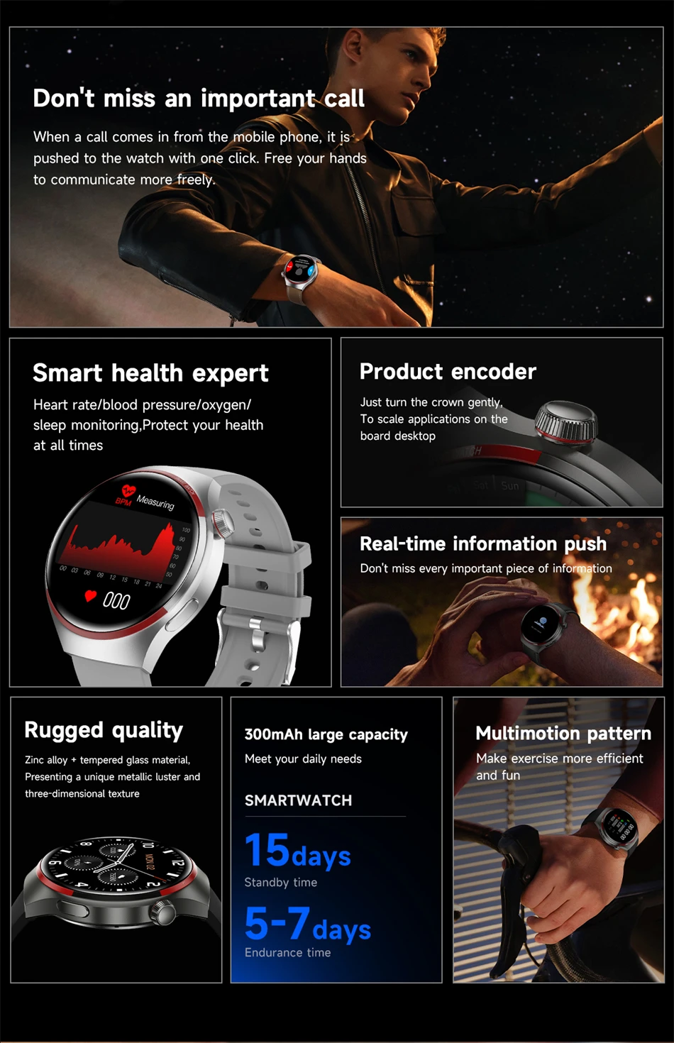 - Feature 10: High-end men’s smart watch